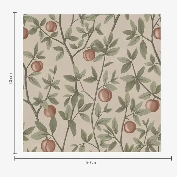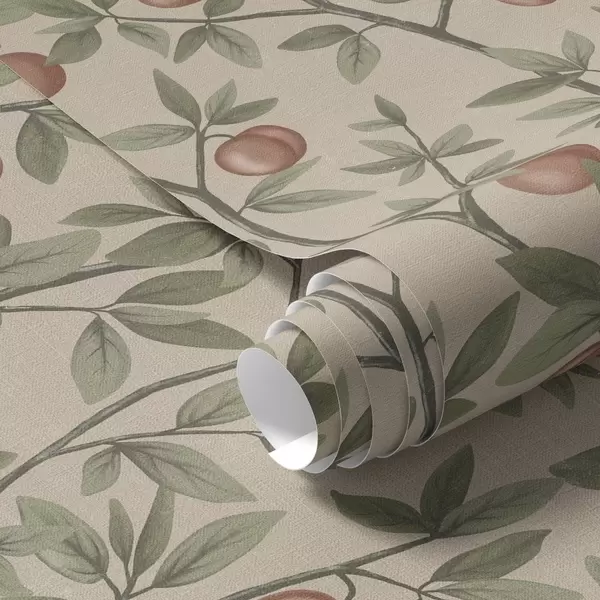 Tapeta Breskve na granama sa zelenim lišćem na bež pozadini br. a00429