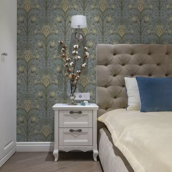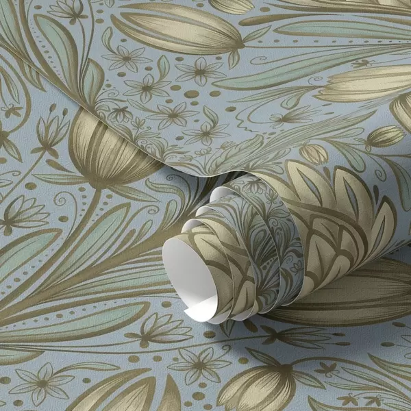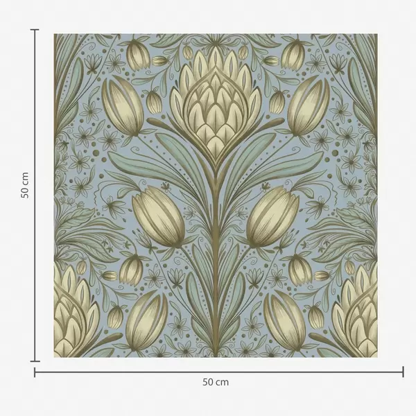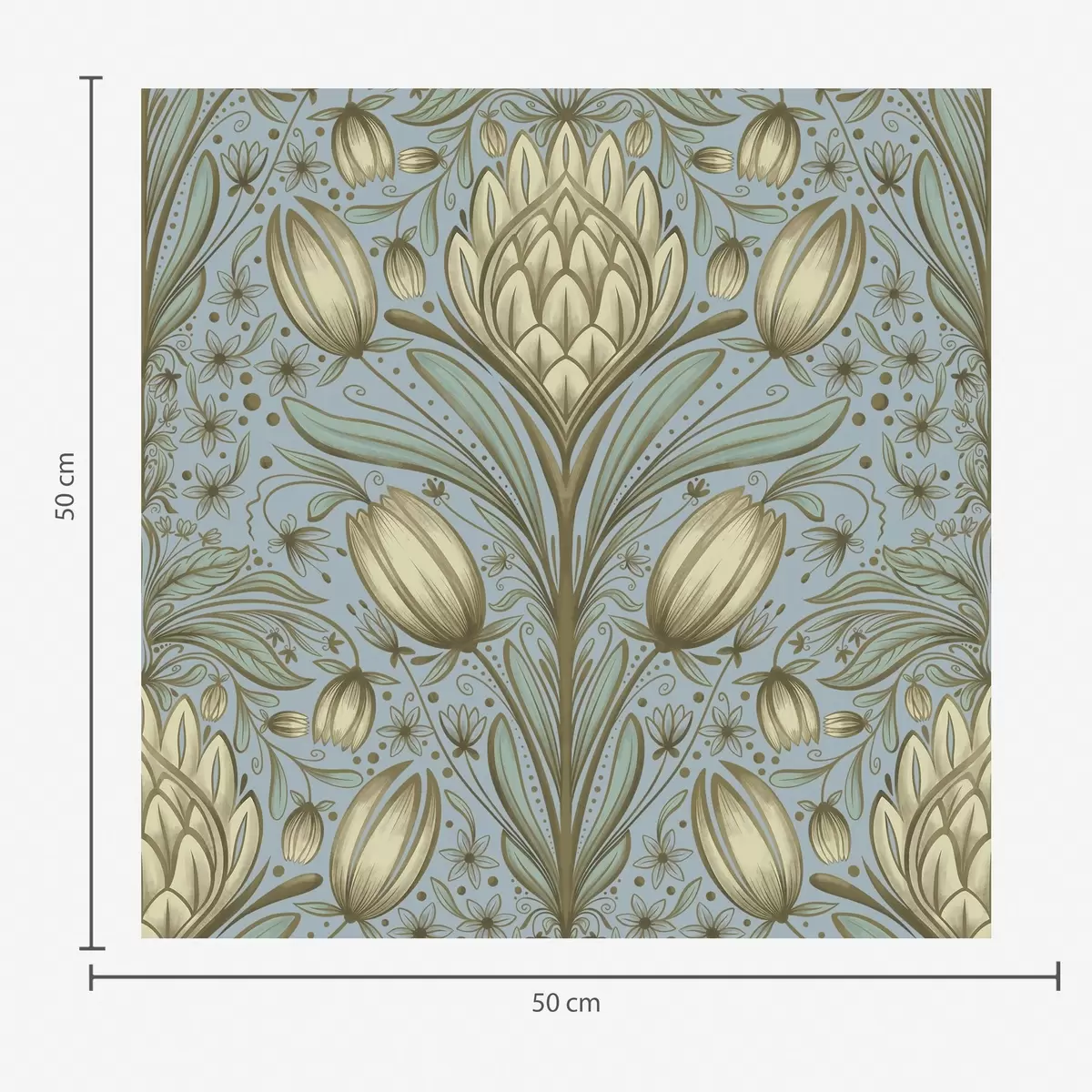 Tapeta Plavi uzorak s artičokama i tulipanima br. a00435