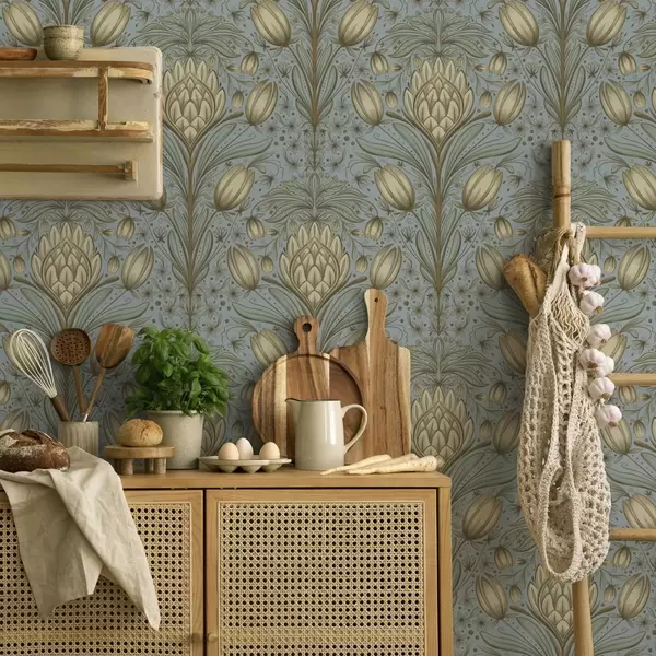 Tapeta Plavi uzorak s artičokama i tulipanima br. a00435