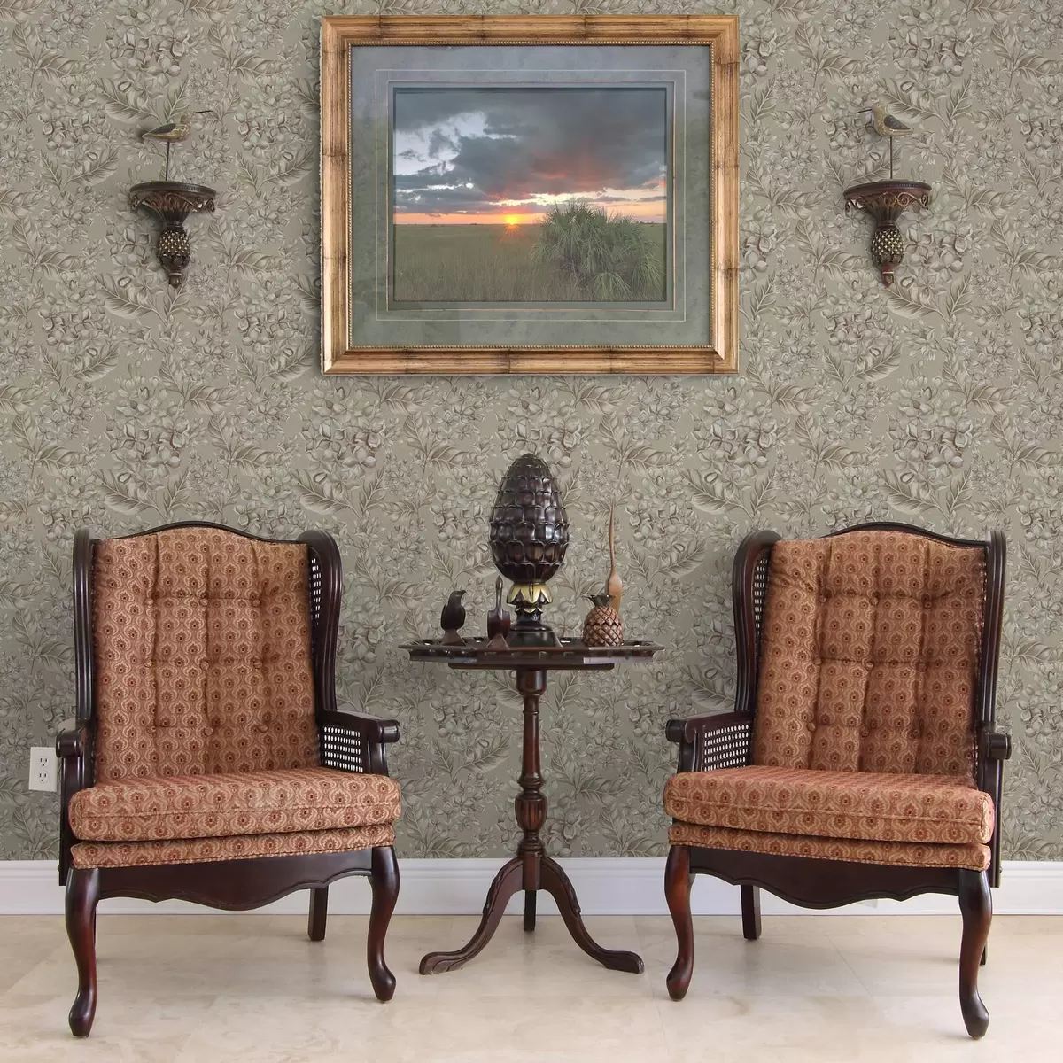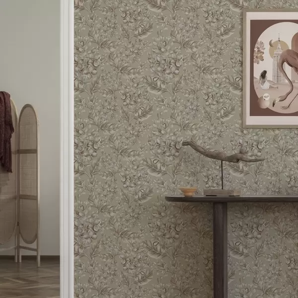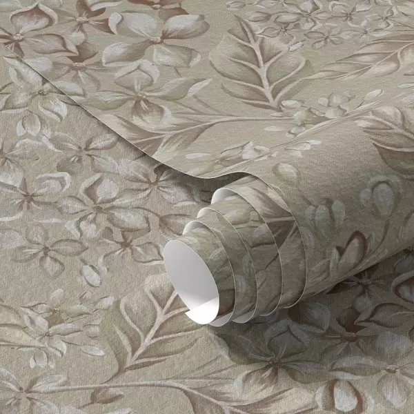 Tapeta Bež grane s bijelim cvjetovima u toplim nijansama br. a00441
