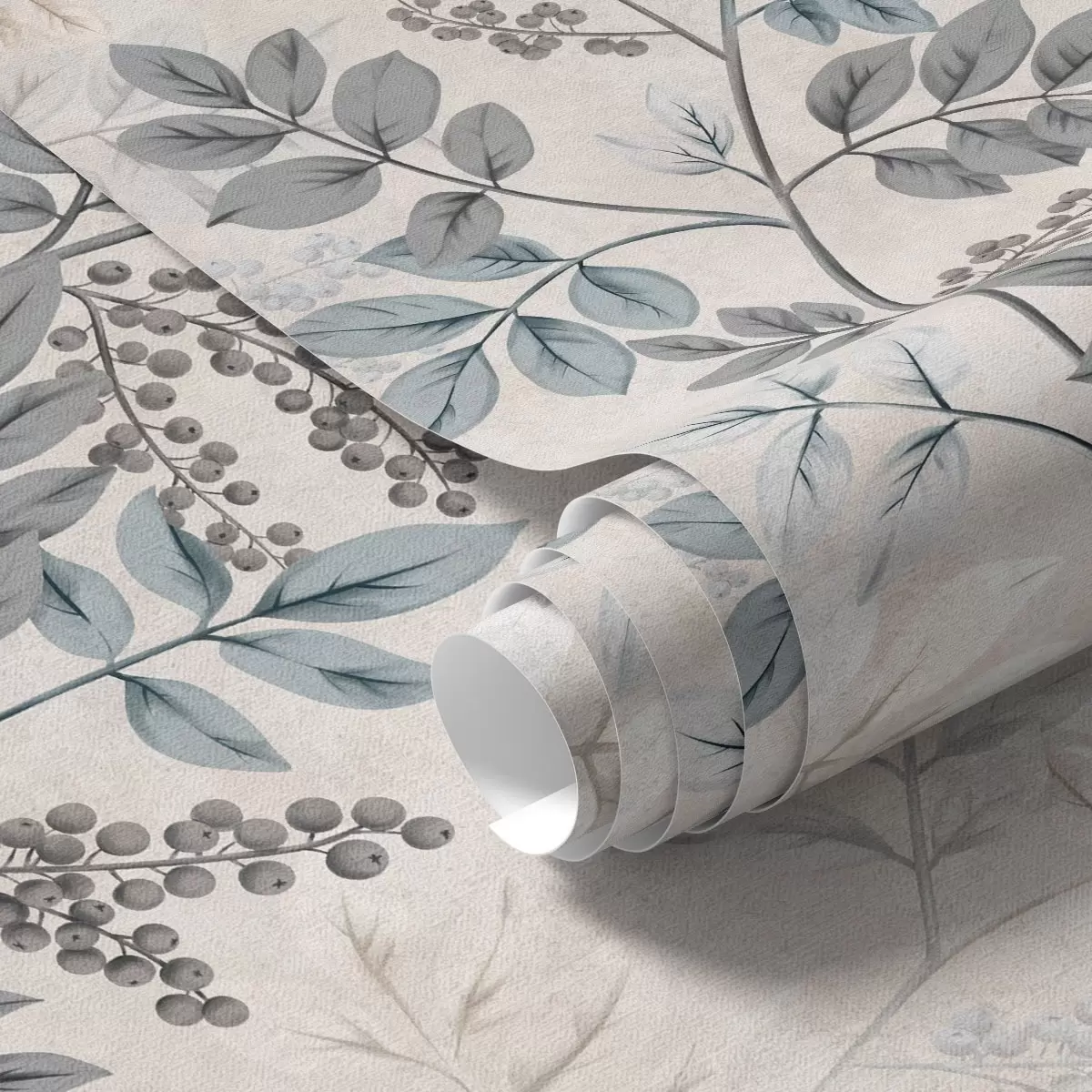 Tapeta Grančice bobičastog voća u pastelnim nijansama sa sivo-plavim lišćem br. a00443