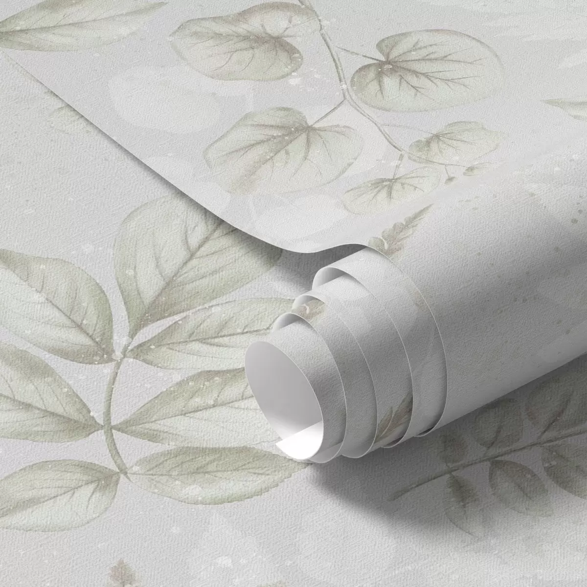 Tapeta Svijetlo akvarelno lišće s efektom prskanja na sivoj pozadini br. a00446
