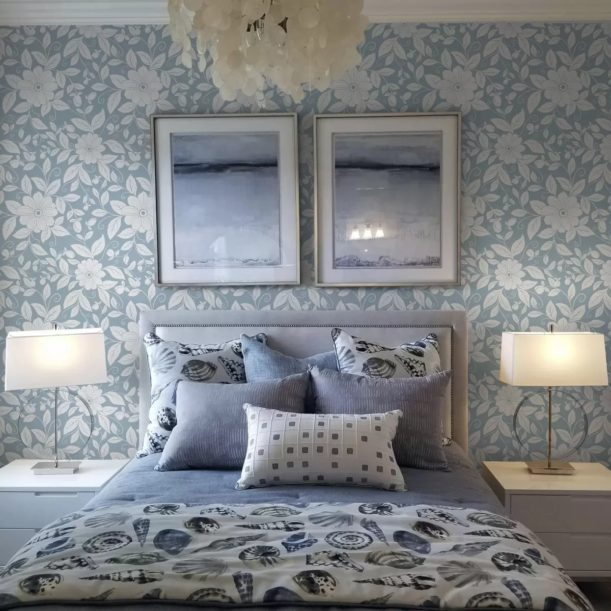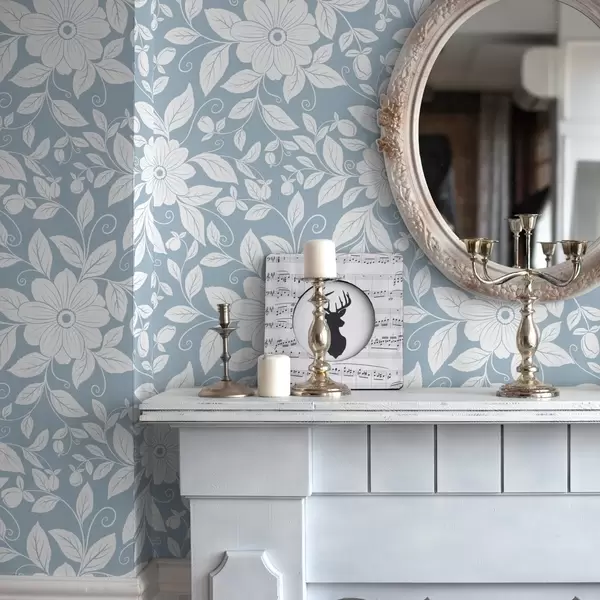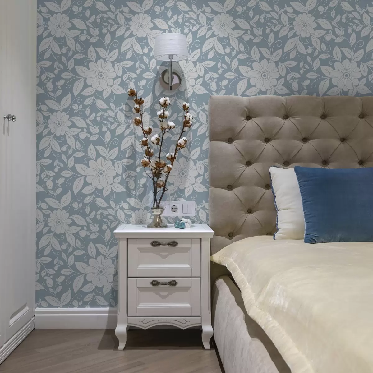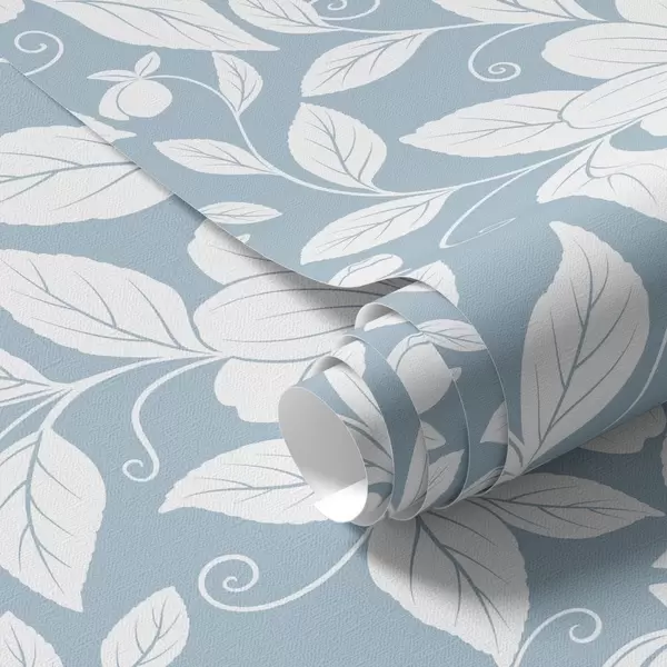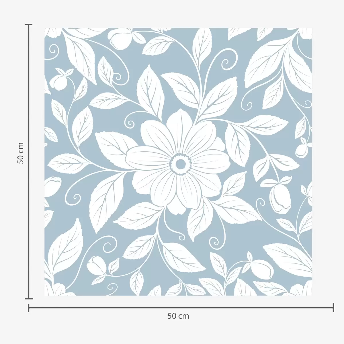 Tapeta Bijeli cvjetni obris na pastelno plavoj pozadini br. a00452