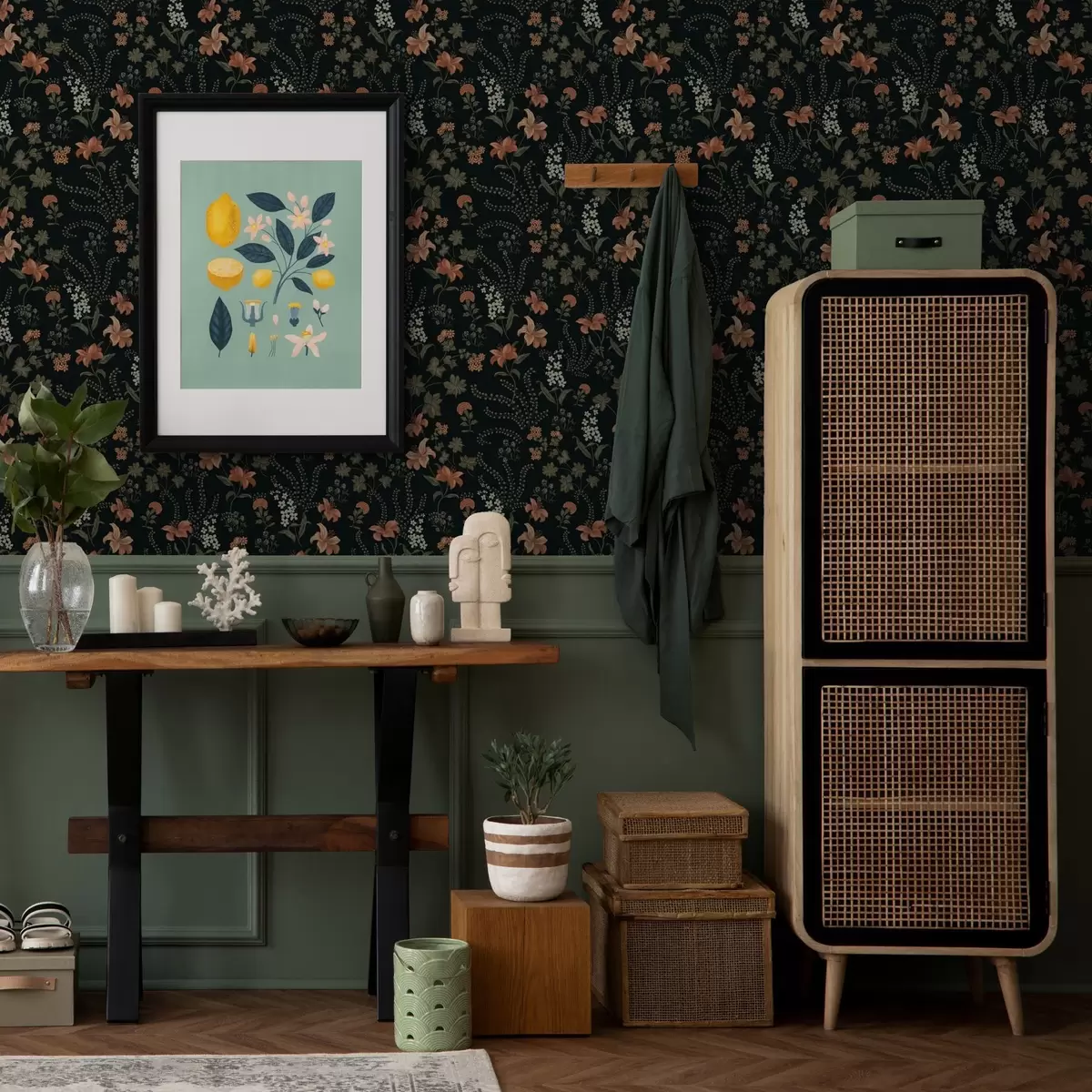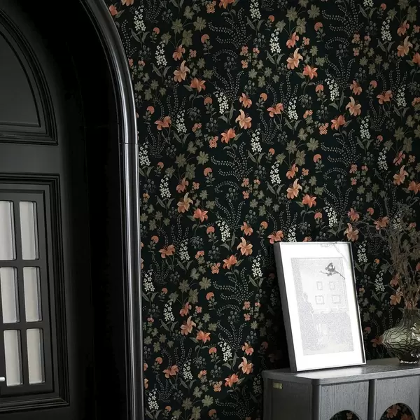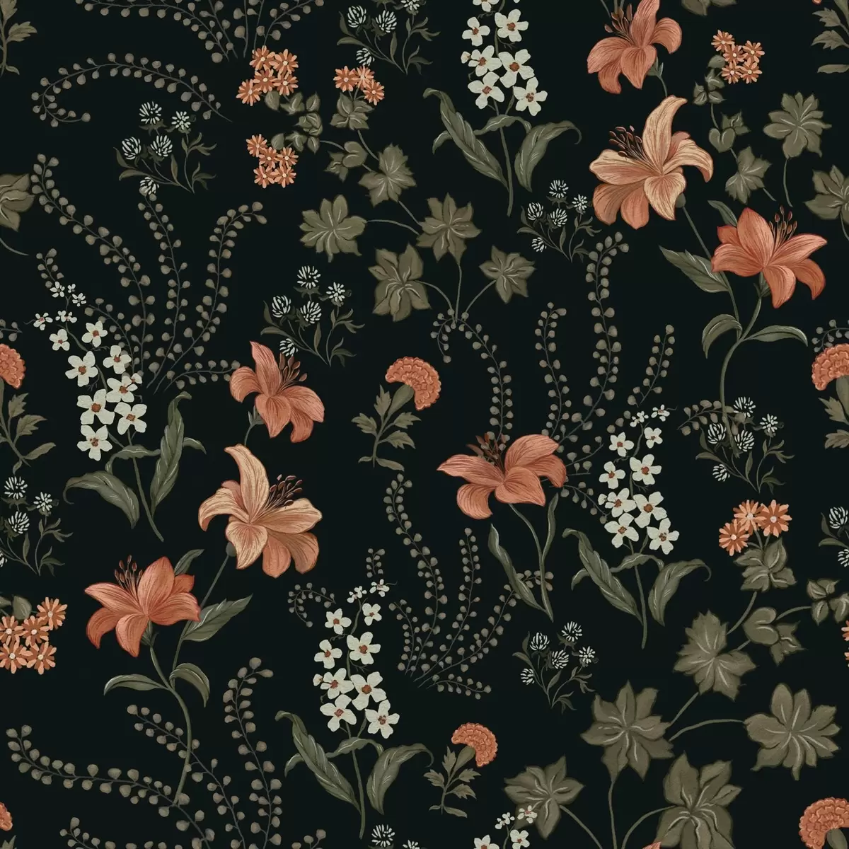 Tapeta Narančasti ljiljani i mali cvjetovi na crnoj pozadini br. a00463
