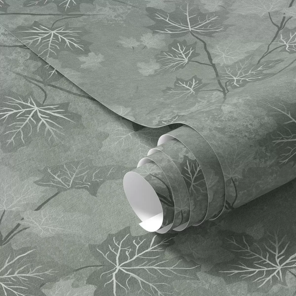 Tapeta Mat javorovo lišće u mekim zelenim tonovima br. a00464