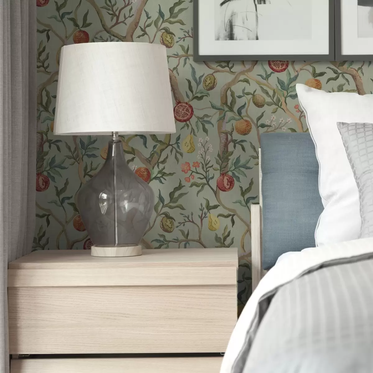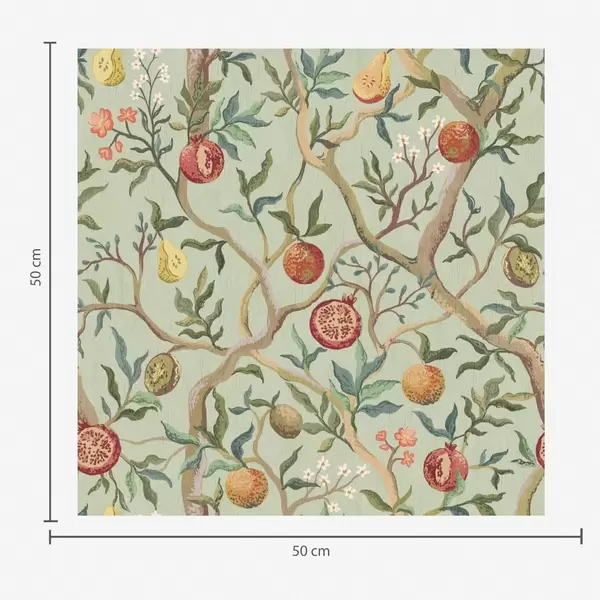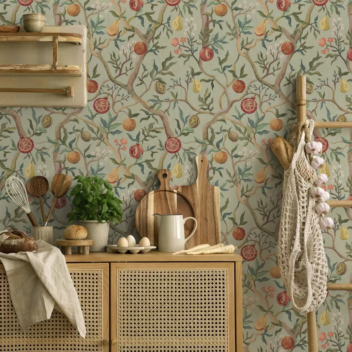 Tapeta Nar, kruške i cvijeće na blijedozelenoj pozadini br. a00465