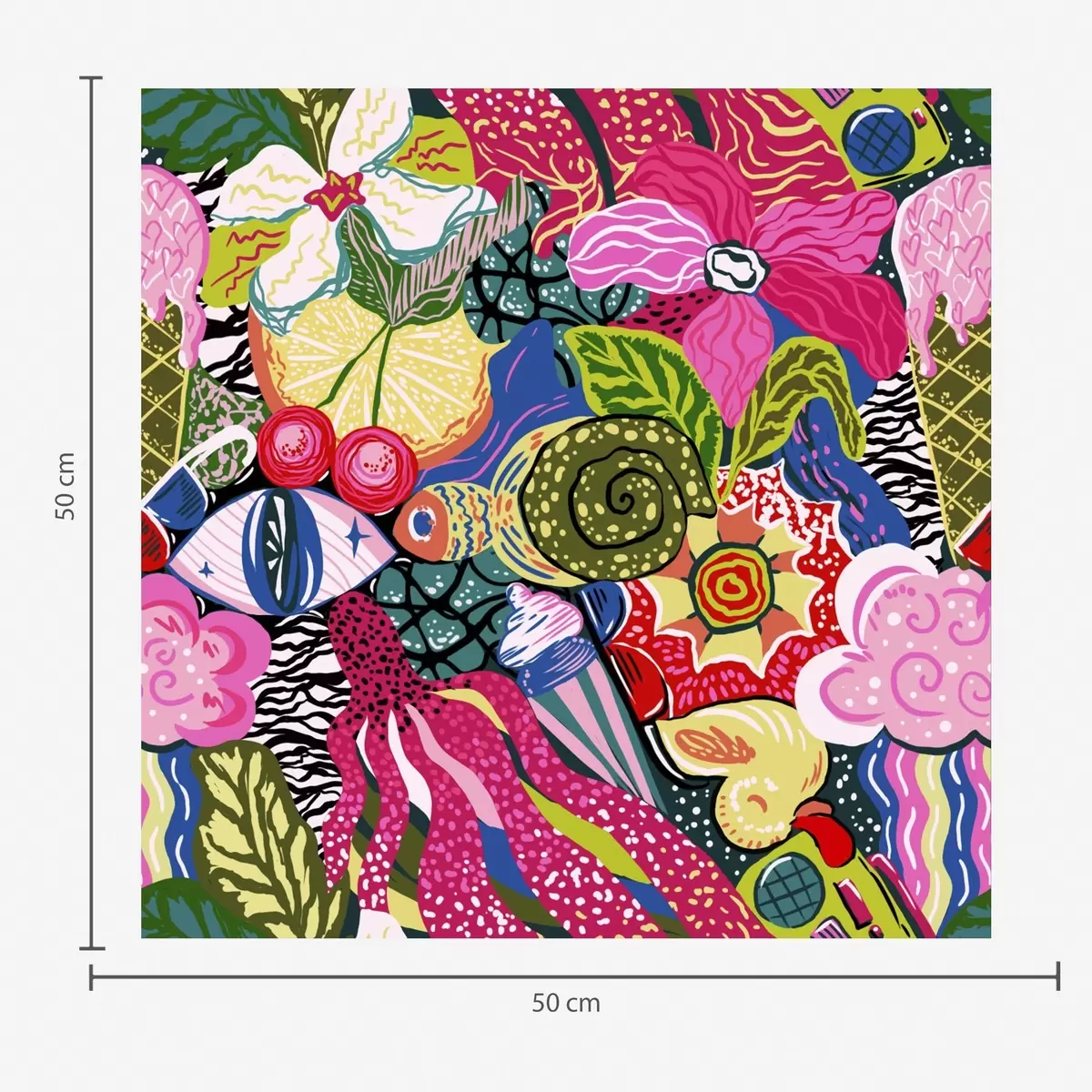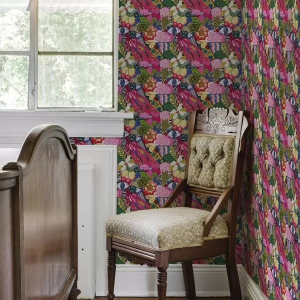 Tapeta Apstraktni pop-art s cvijećem, bobicama i uzorcima br. a00471