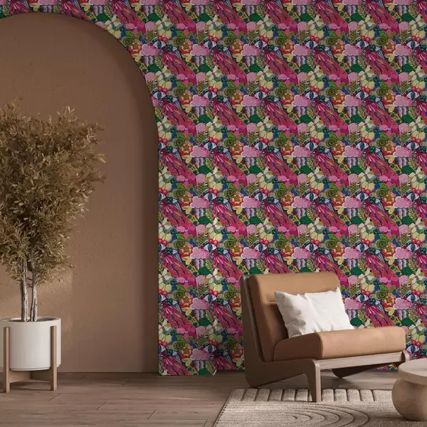 Tapeta Apstraktni pop-art s cvijećem, bobicama i uzorcima br. a00471