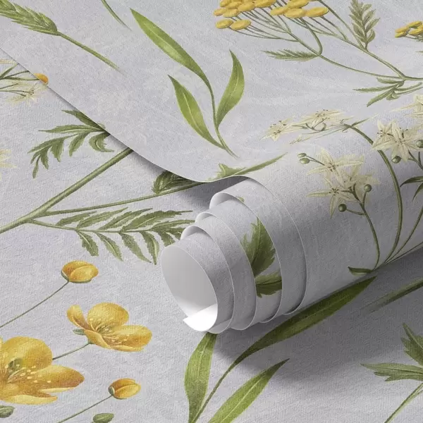 Tapeta Žuto cvijeće i zelenilo na svijetlosivoj pozadini br. a00472