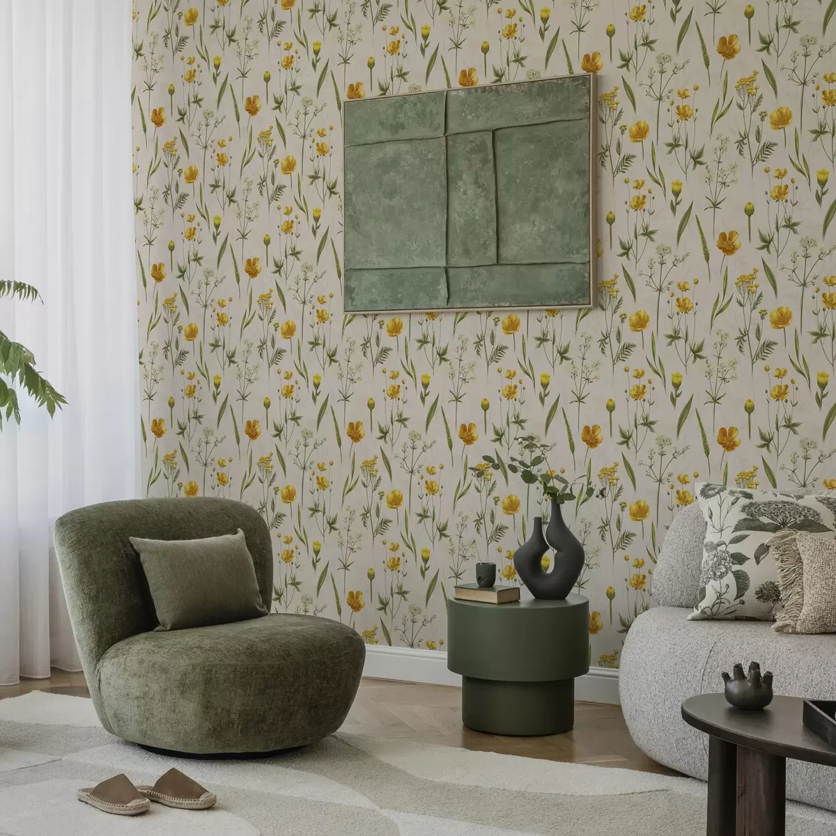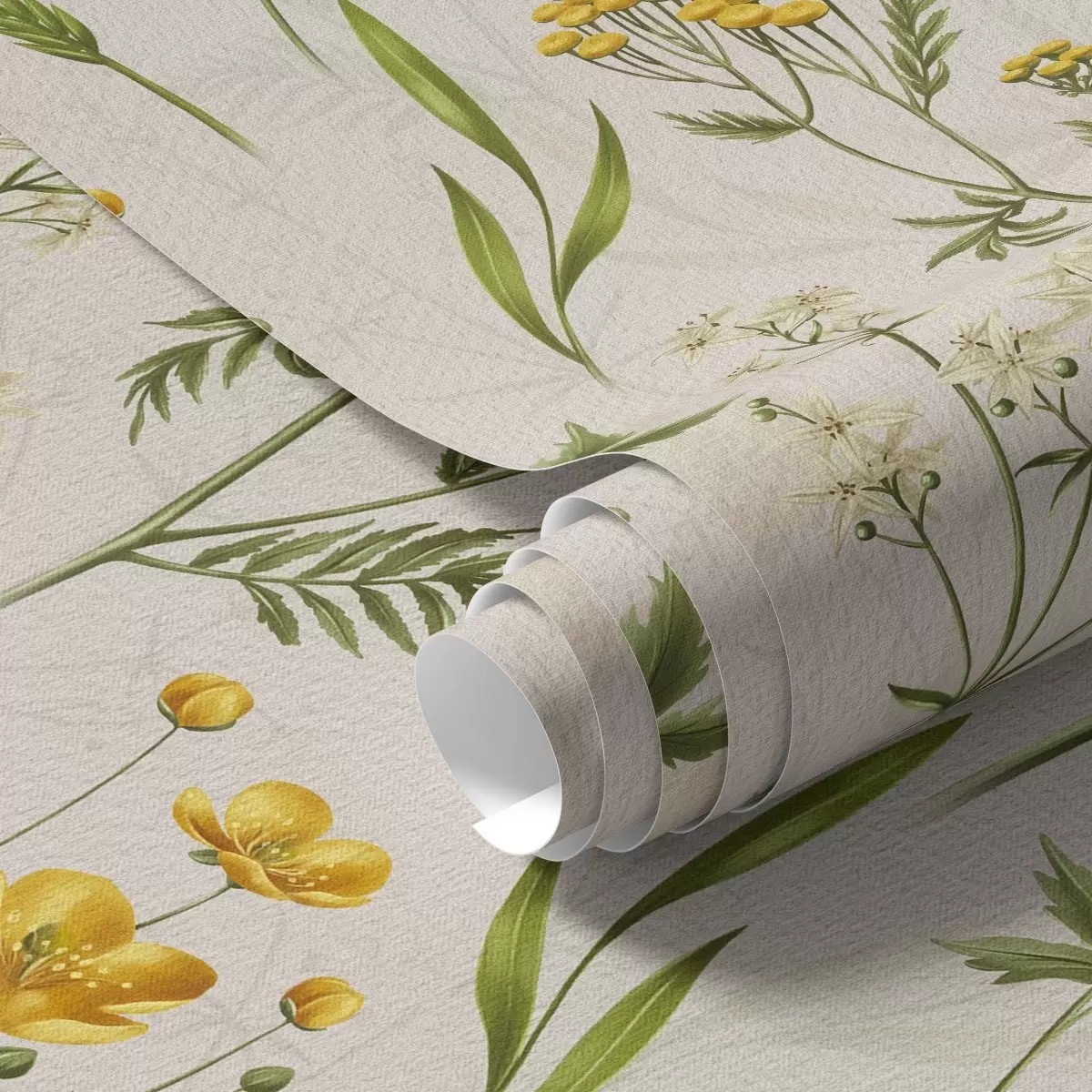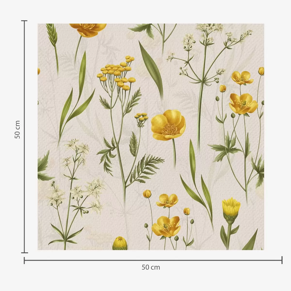 Tapeta Žuto cvijeće i zelenilo na bež pozadini br. a00472v2