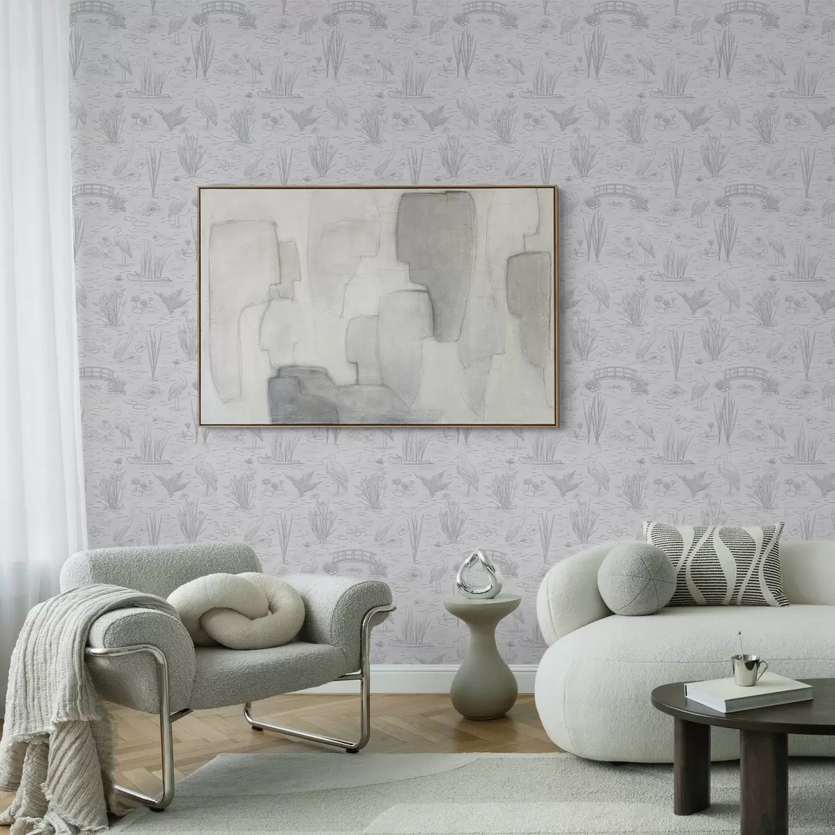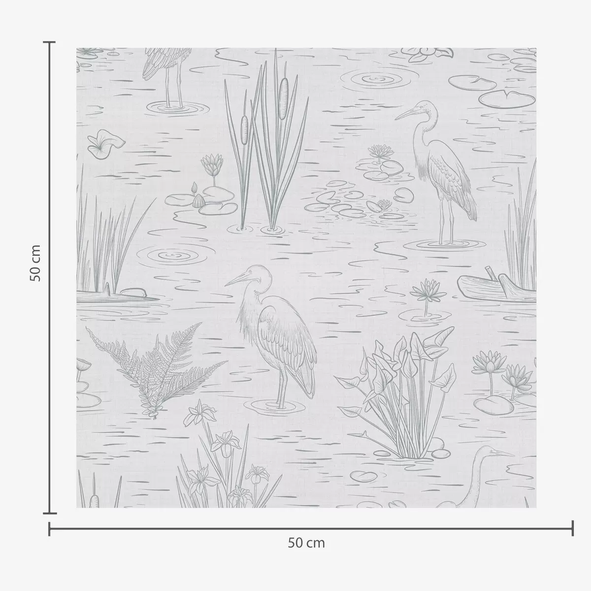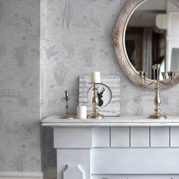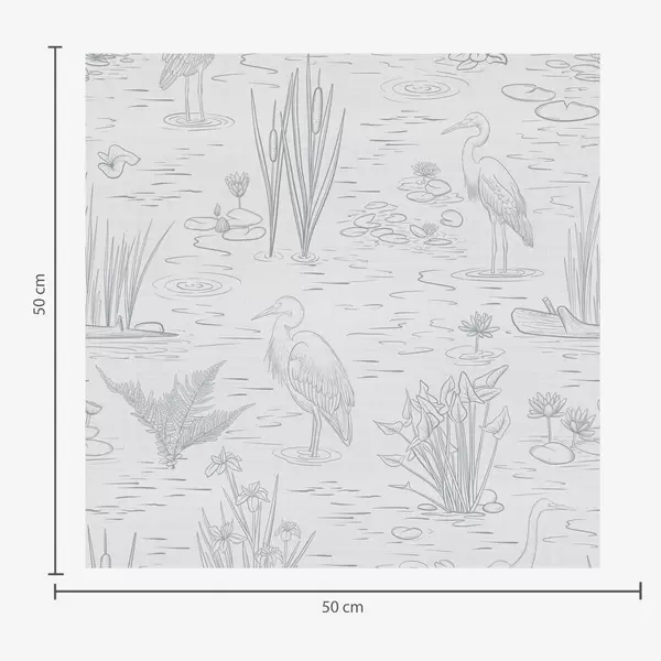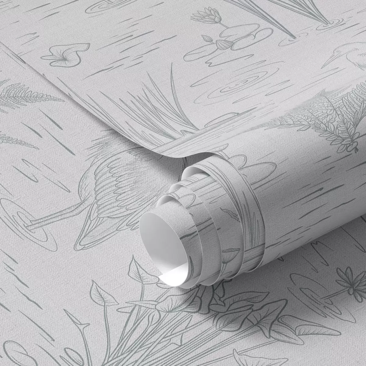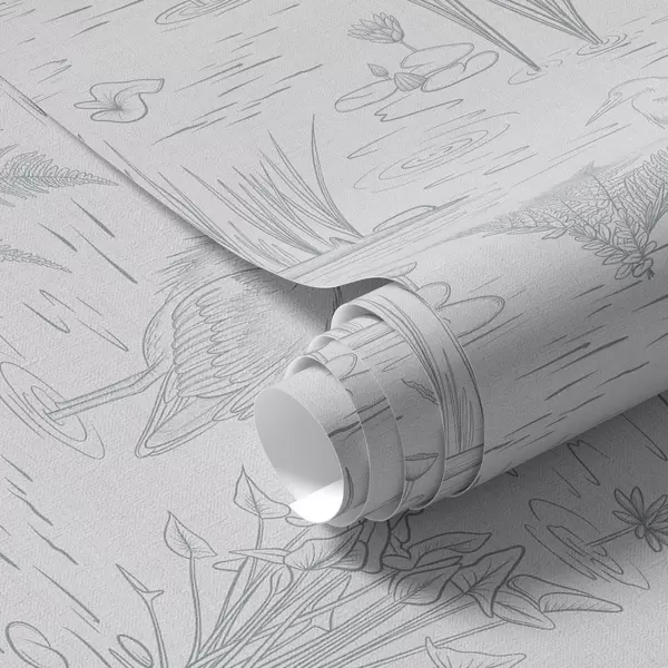 Tapeta Crtanje čaplji i vodenih biljaka u mirnim sivim nijansama br. a00479