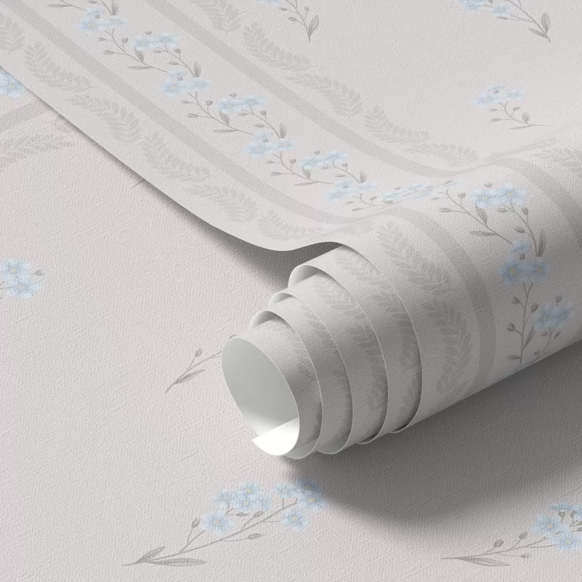 Tapeta Ružičasta pozadina s nježnim plavim cvijećem i obrubom br. a00484