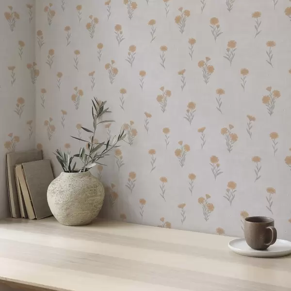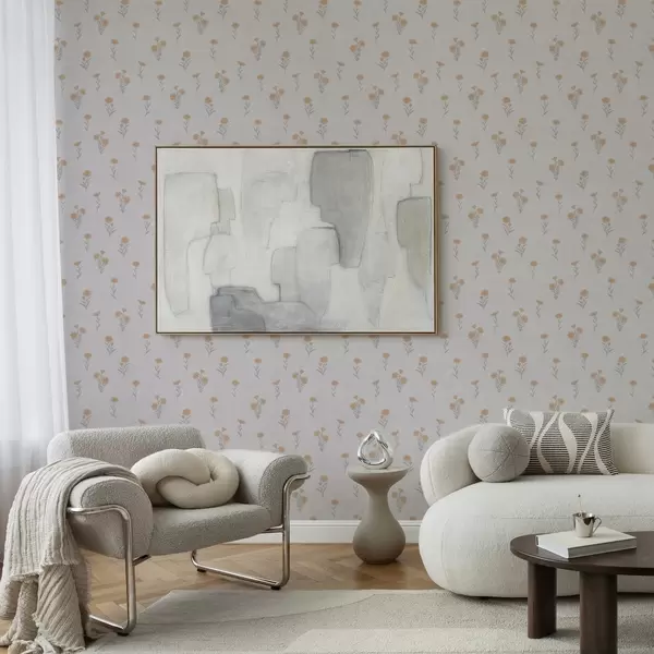 Tapeta Mali narančasti cvjetovi na svijetlosivoj pozadini br. a00486
