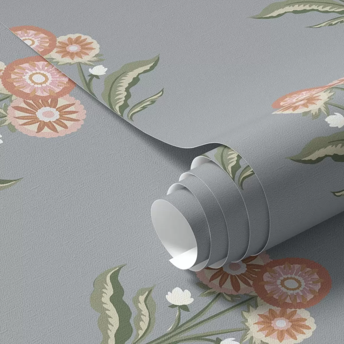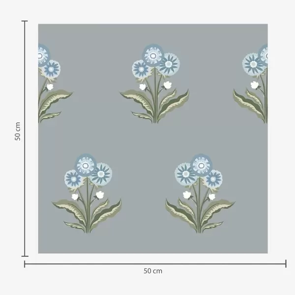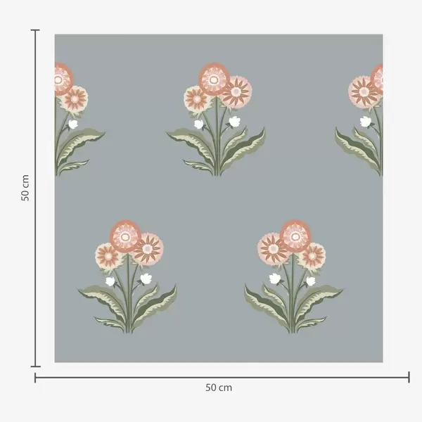 Tapeta Stilizirano cvijeće na sivo-plavoj pozadini, topla paleta br. a00494
