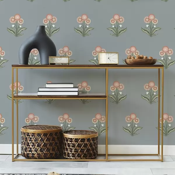 Tapeta Stilizirano cvijeće na sivo-plavoj pozadini, topla paleta br. a00494