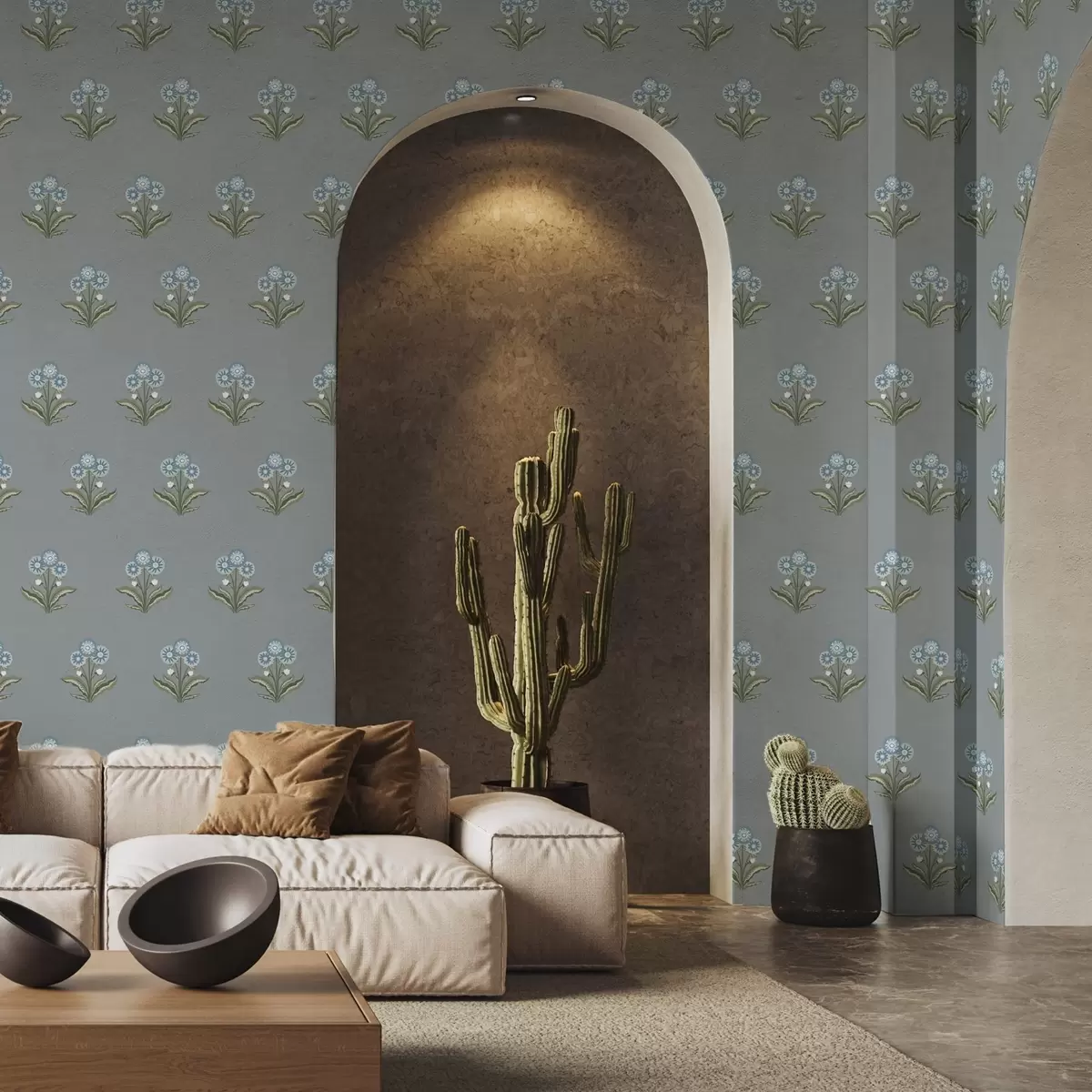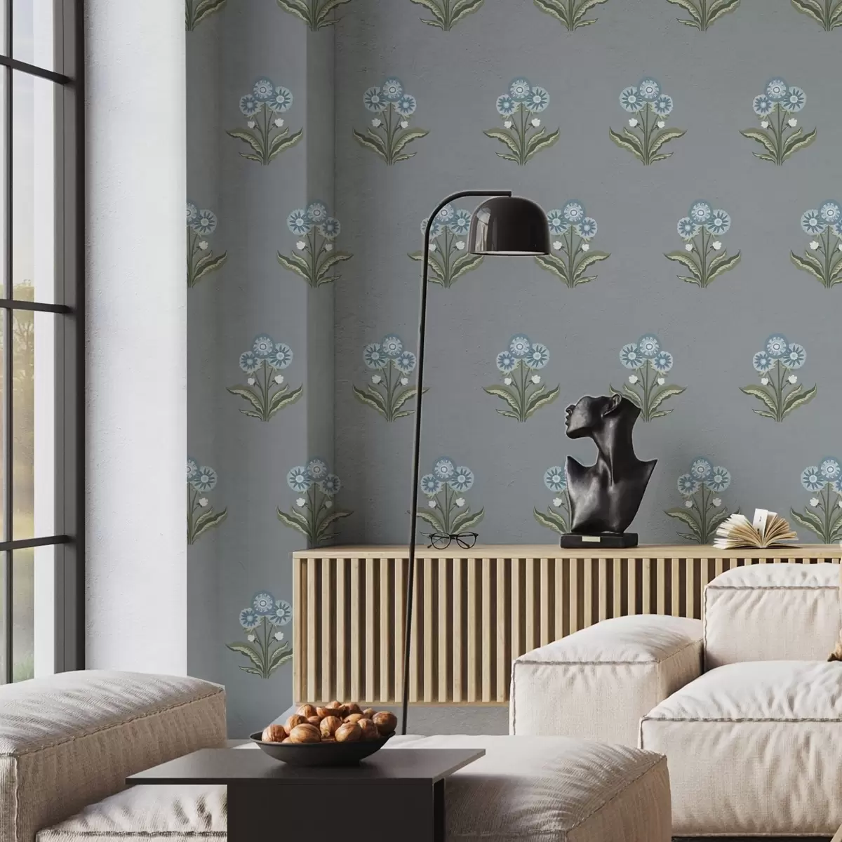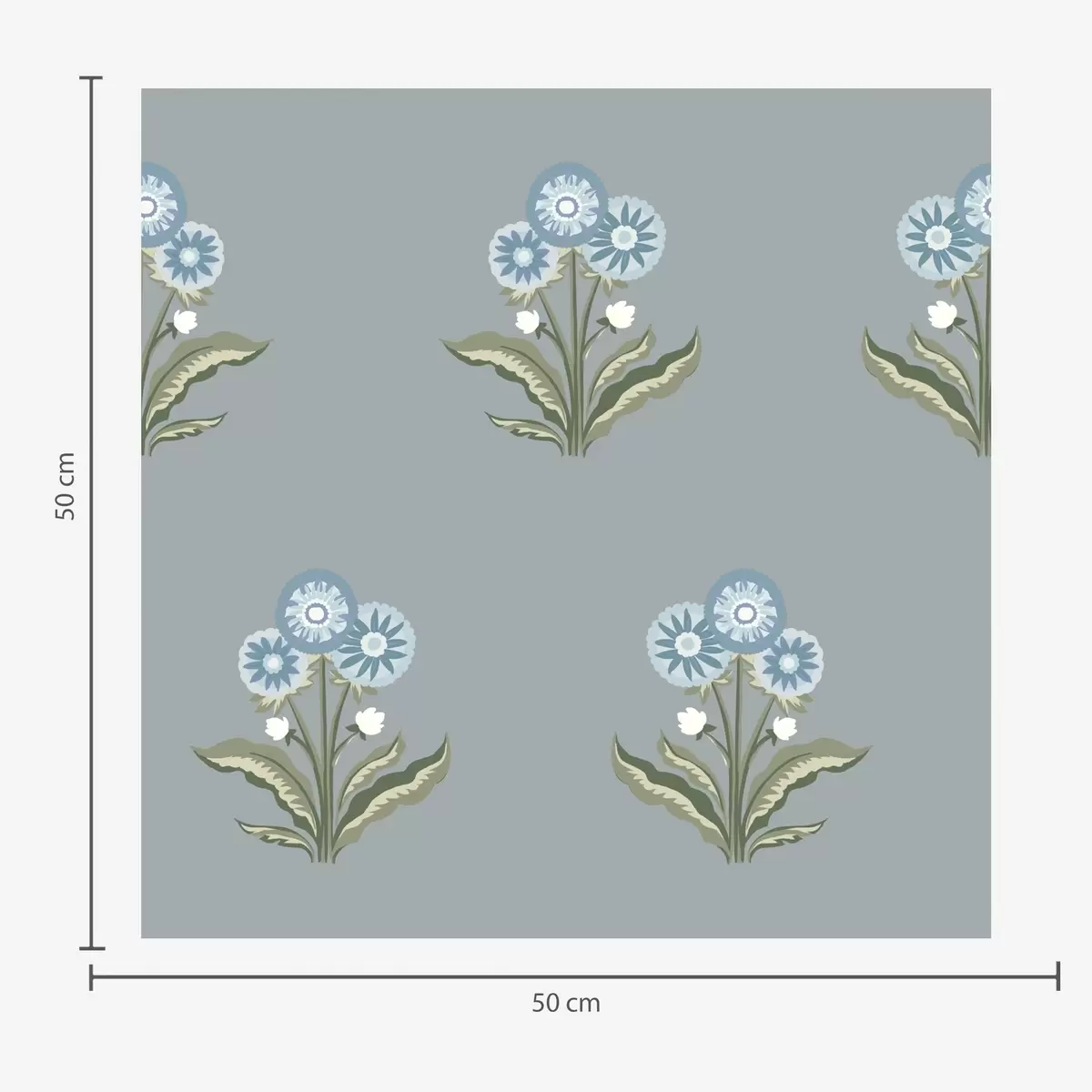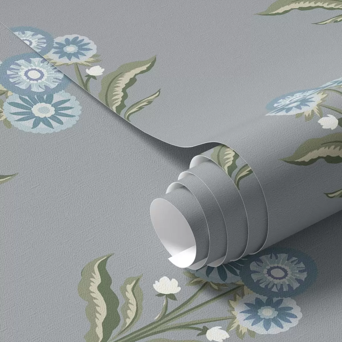 Tapeta Stilizirano cvijeće na sivo-plavoj pozadini, hladna paleta br. a00494v1