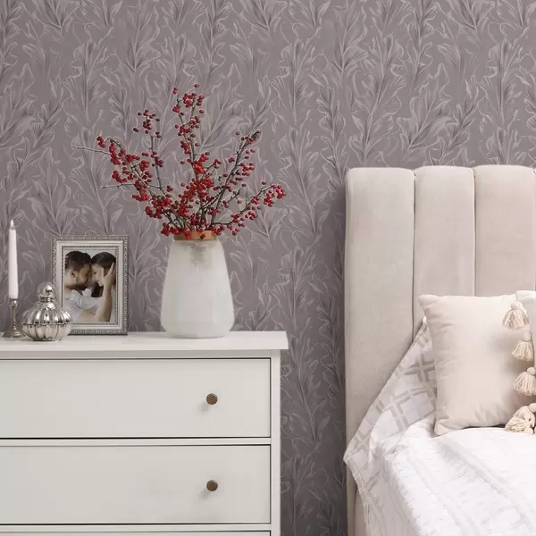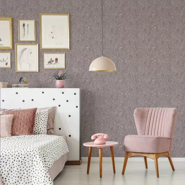 Tapeta Lepršavi lisnati valovi u prašnjavo ružičasto-bež paleti br. a00495