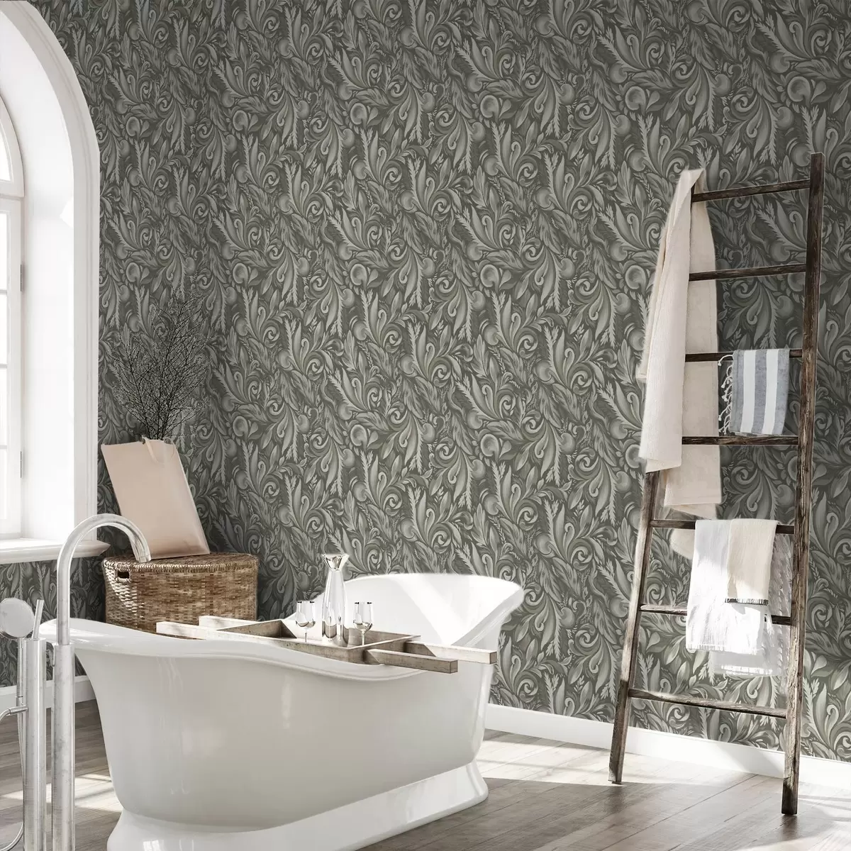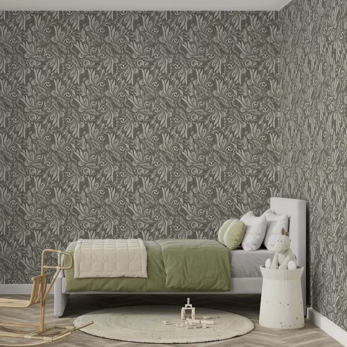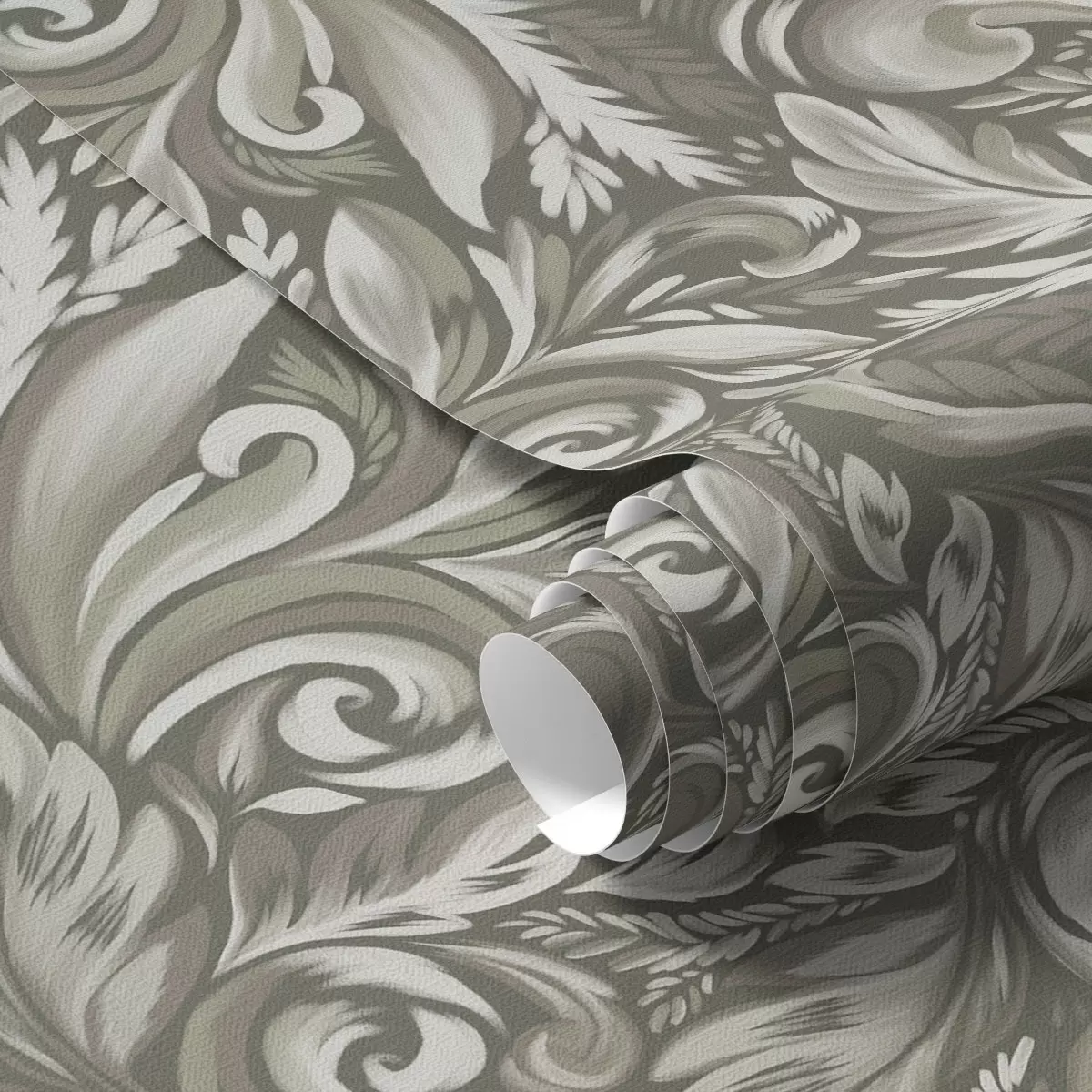 Tapeta Acanthus svici u maslinasto-bež paleti br. a00501