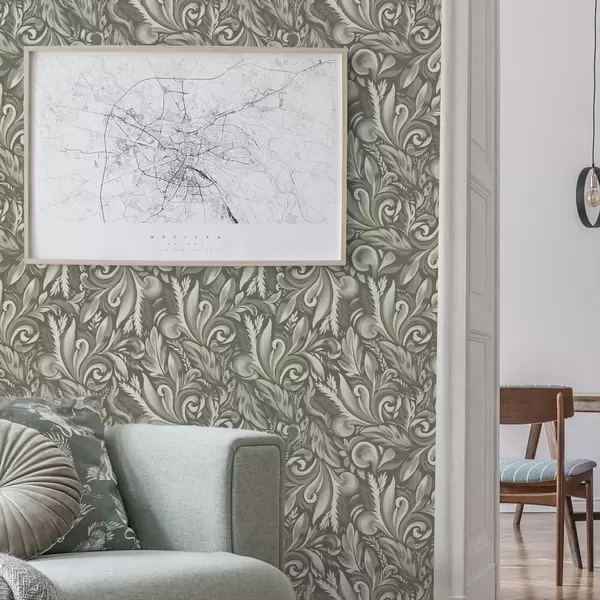 Tapeta Acanthus svici u maslinasto-bež paleti br. a00501