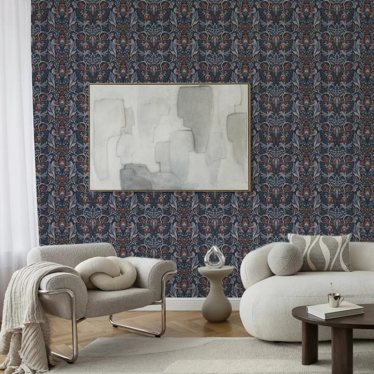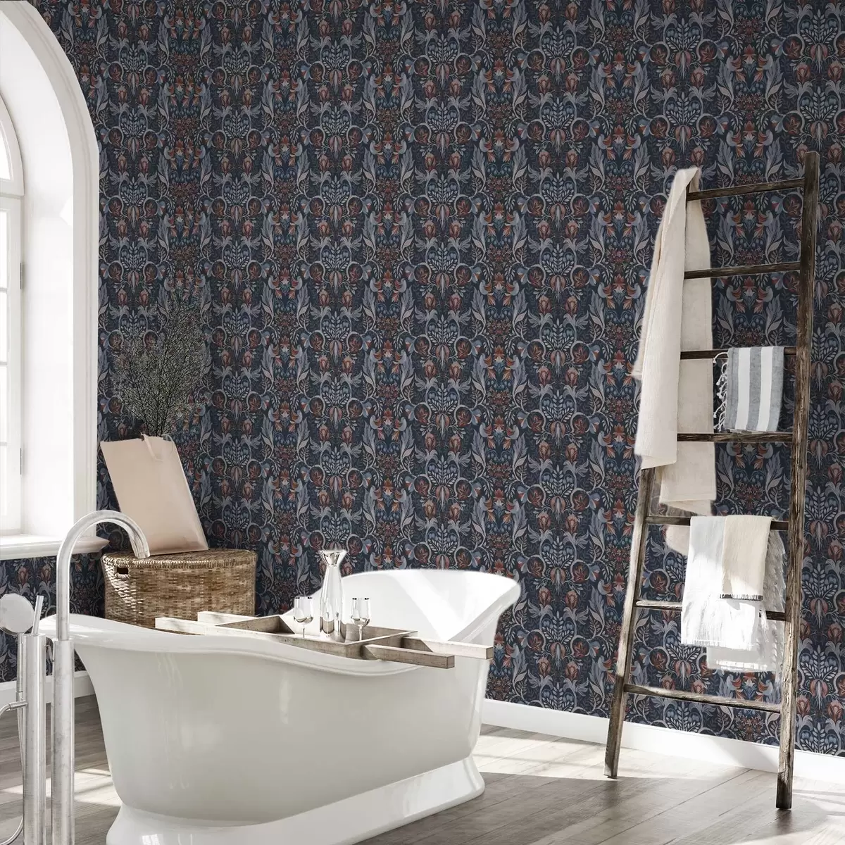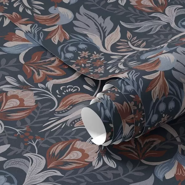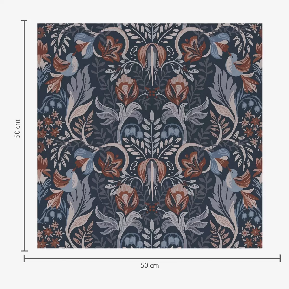 Tapeta Narodni ukras s pticama, tamno indigo boje br. a00502v1
