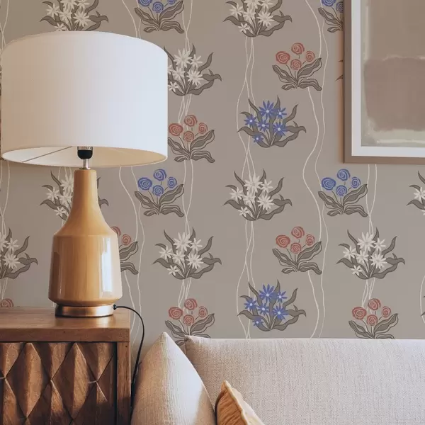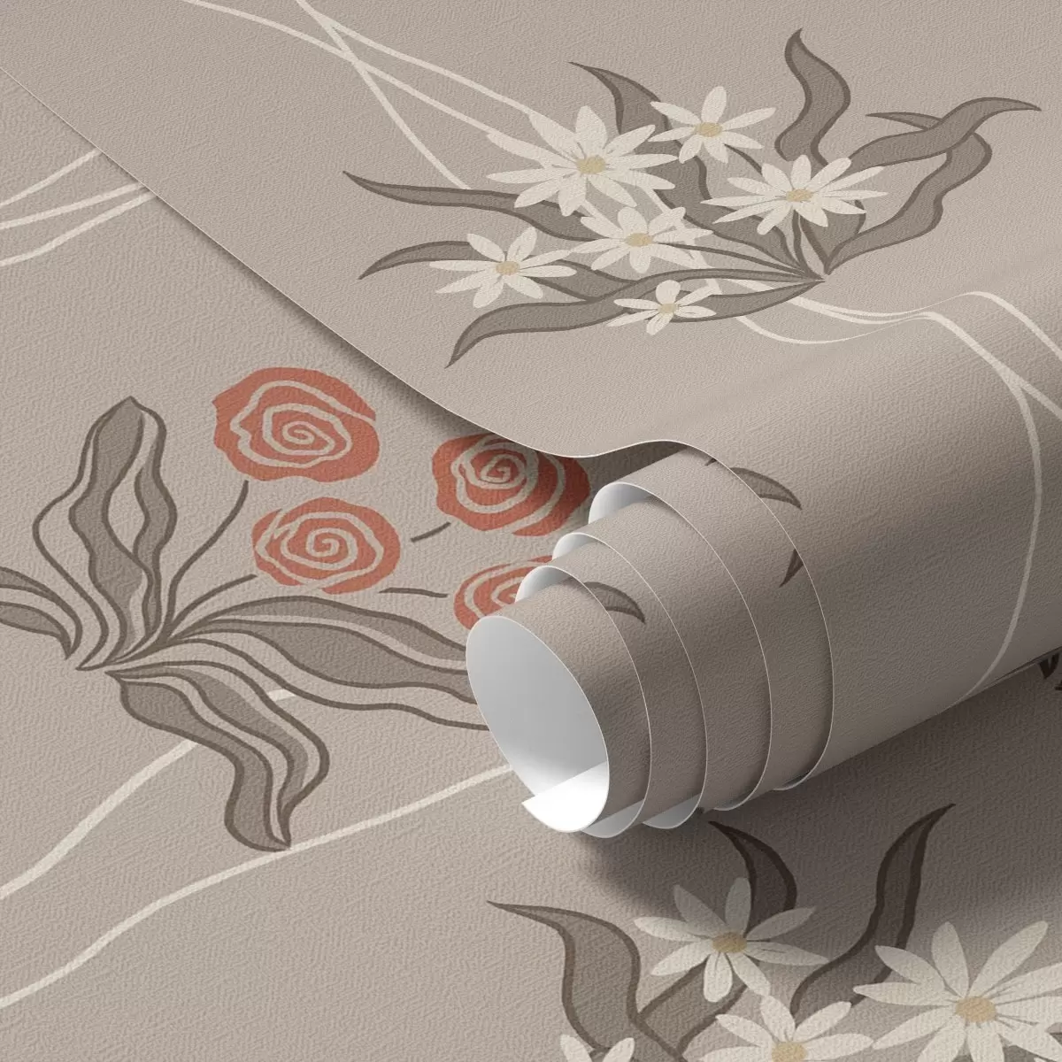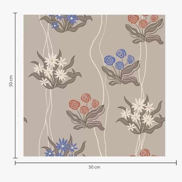 Tapeta Retro cvijeće s valovitim linijama na toploj bež boji br. a00503