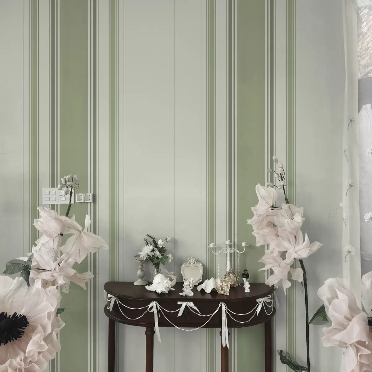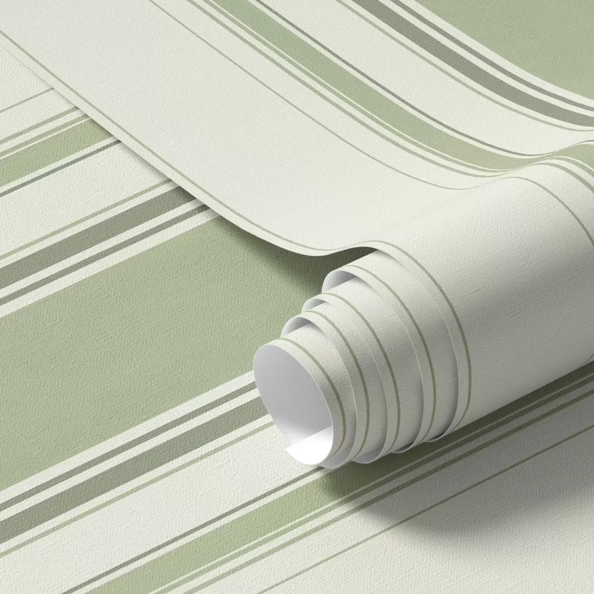 Tapeta Krem pozadina sa širokom zelenom središnjom prugom br. a00519