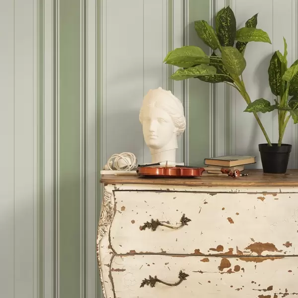 Tapeta Krem pozadina sa širokom zelenom središnjom prugom br. a00519