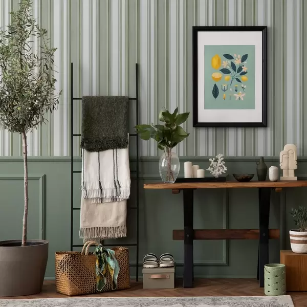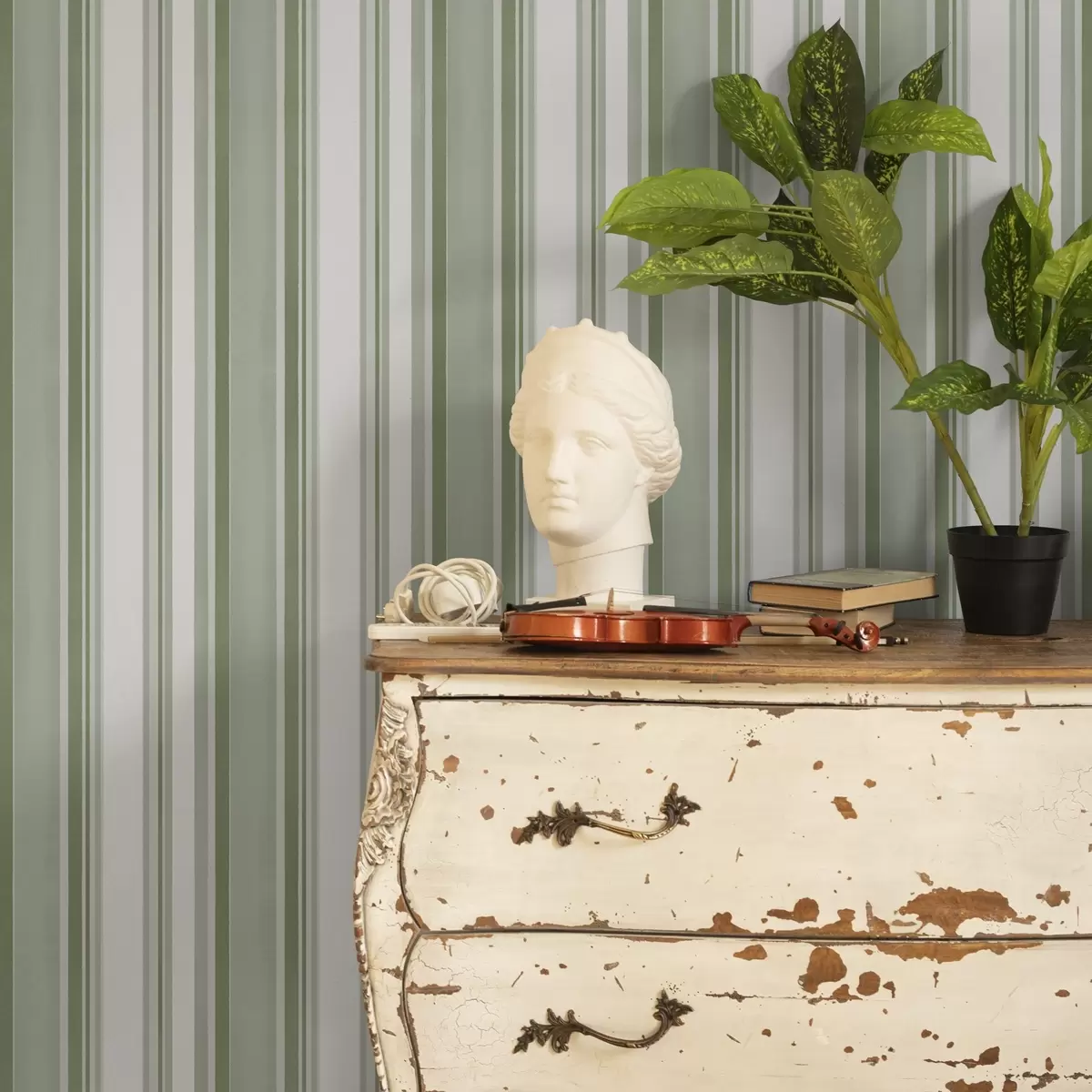 Tapeta Zelene pruge s bijelim intervalima i tankim linijama br. a00526