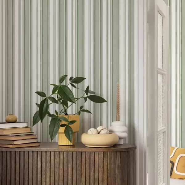 Tapeta Zelene pruge s bijelim intervalima i tankim linijama br. a00526