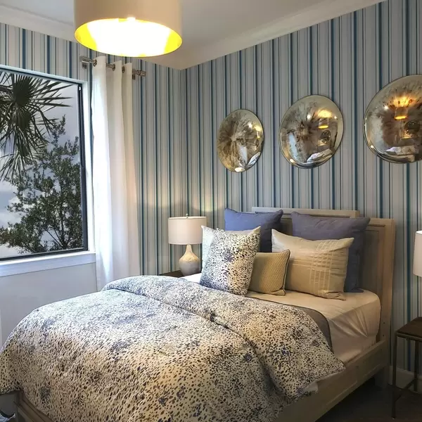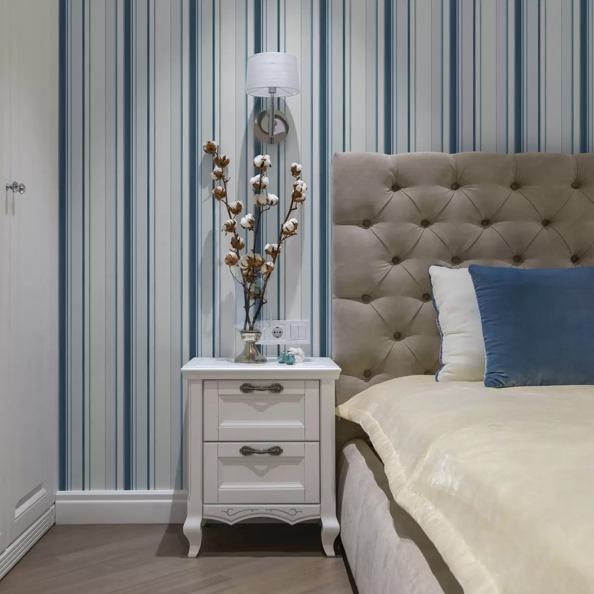 Tapeta Tirkizne i plave pruge različitih širina na svijetloj pozadini br. a00530