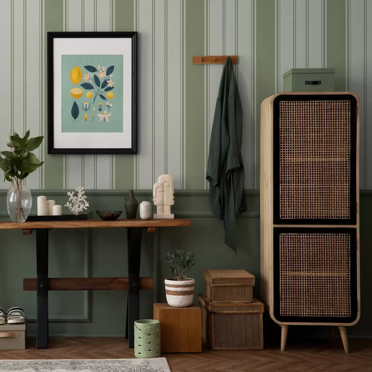 Tapeta Krem pozadina sa širokim svijetlozelenim prugama br. a00561