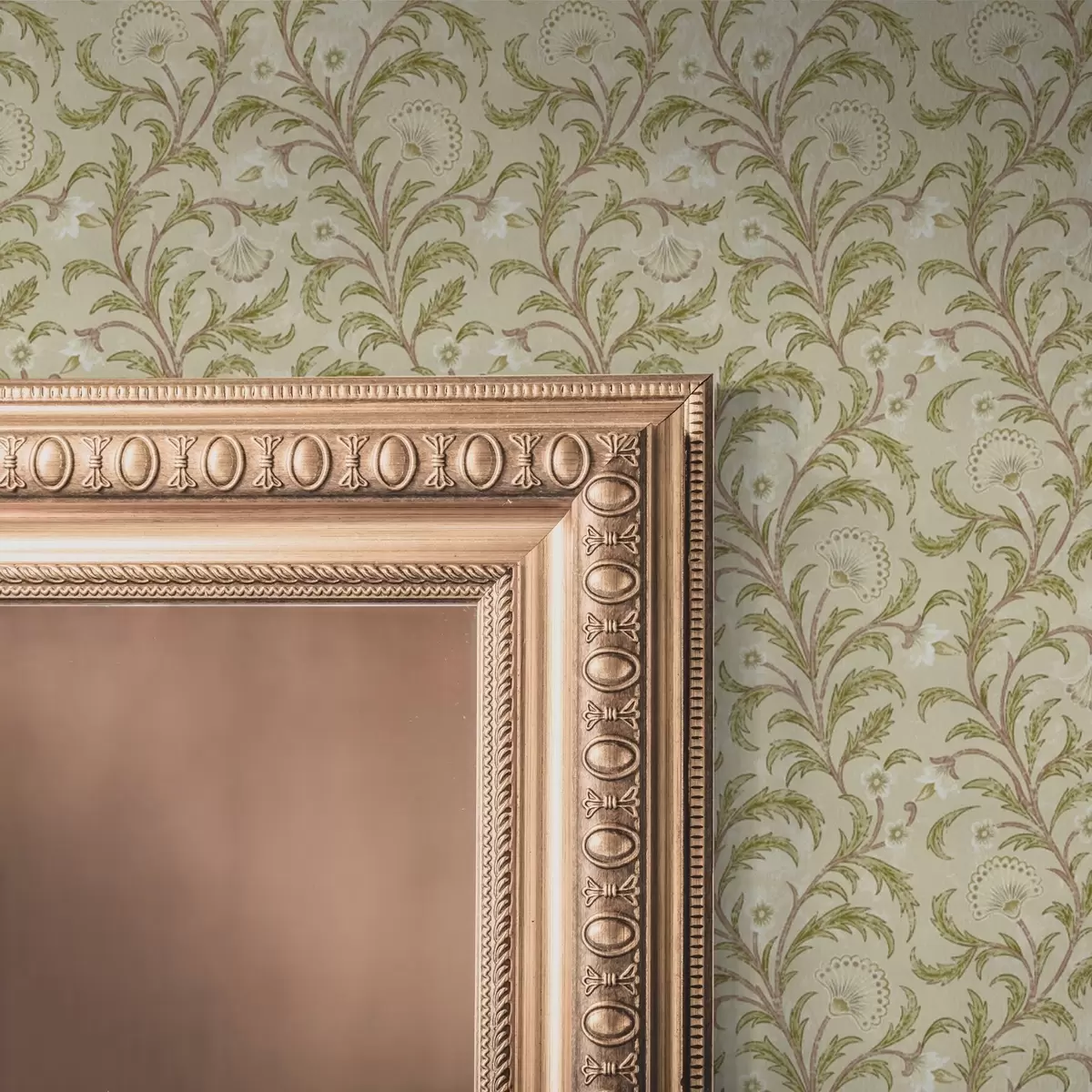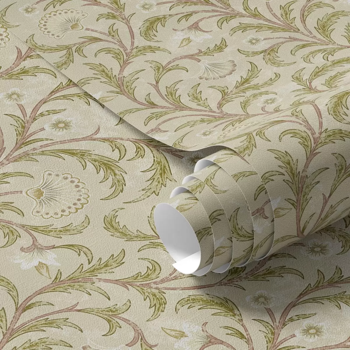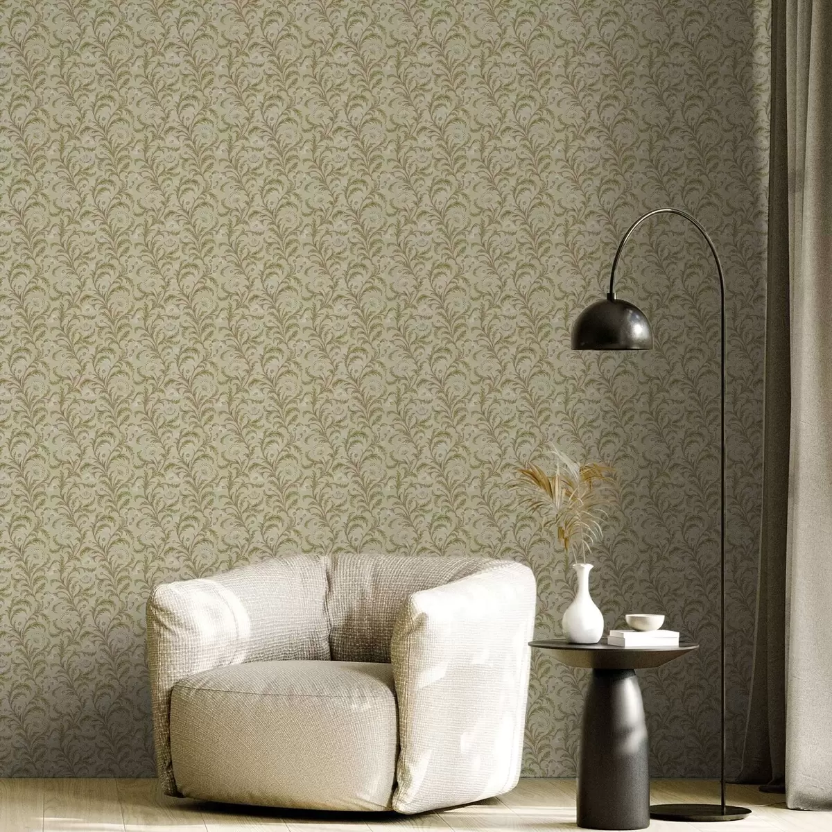 Tapeta Vintage ukras sa svitcima i cvijećem, bež i maslinasto br. a00574