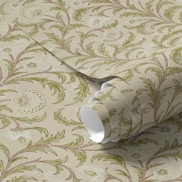 Pozadina Vintage ukras sa svitcima i cvijećem, bež i maslinasto a00574