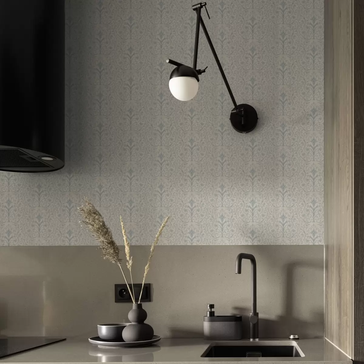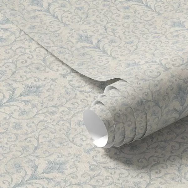 Tapeta Plavi damast sa svitcima na krem pozadini br. a00578