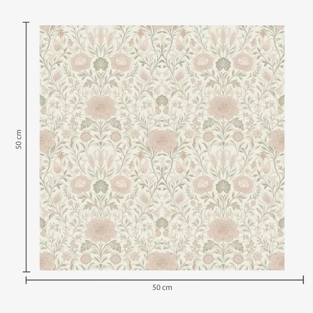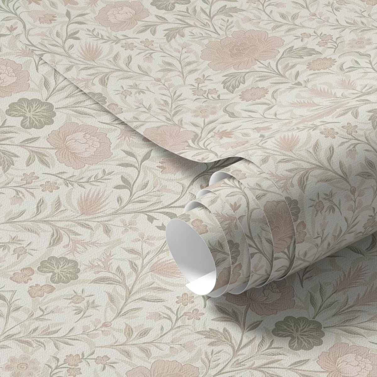 Tapeta Morrisov stil: božuri i trave u nježnim bež-zelenim tonovima br. a00581