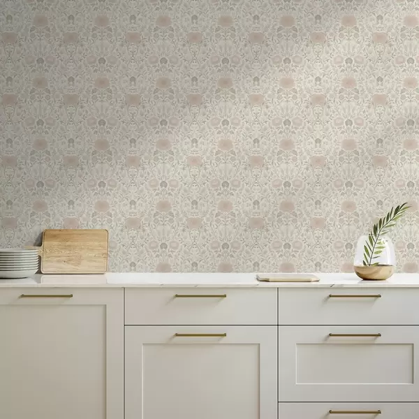 Tapeta Morrisov stil: božuri i trave u nježnim bež-zelenim tonovima br. a00581