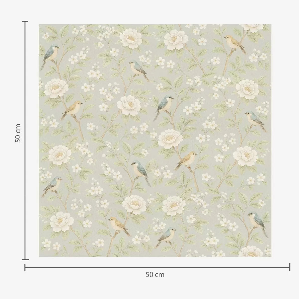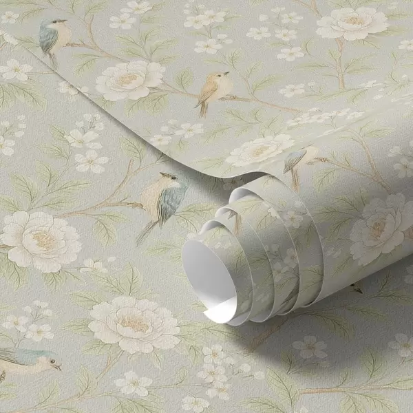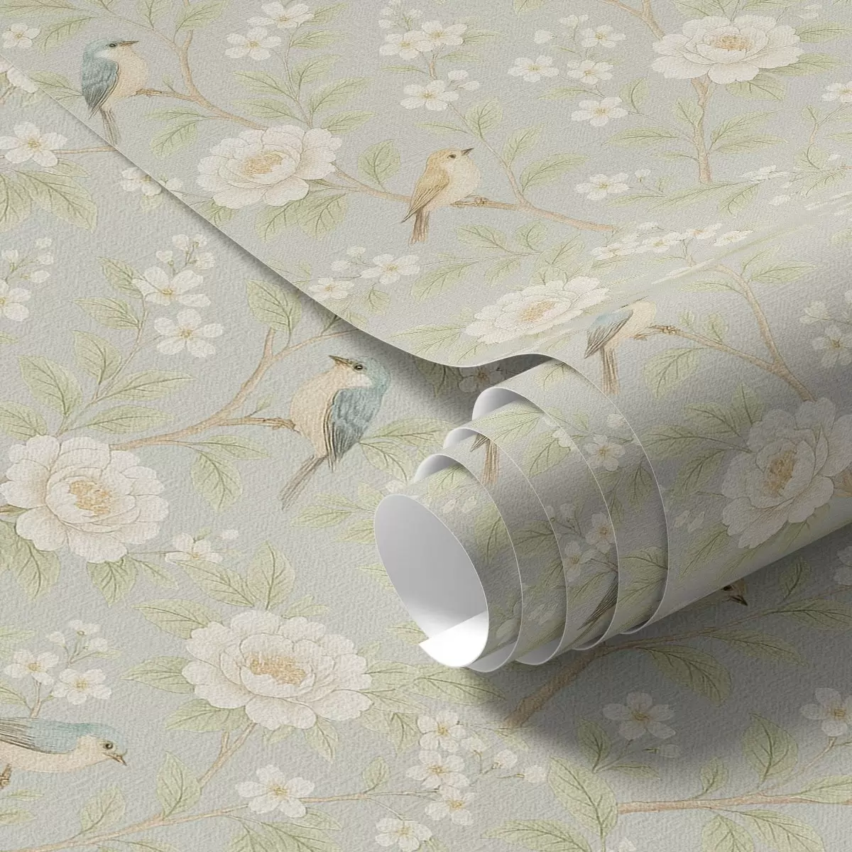 Tapeta Ptice među bijelim cvjetovima na sivozelenoj pozadini br. a00583