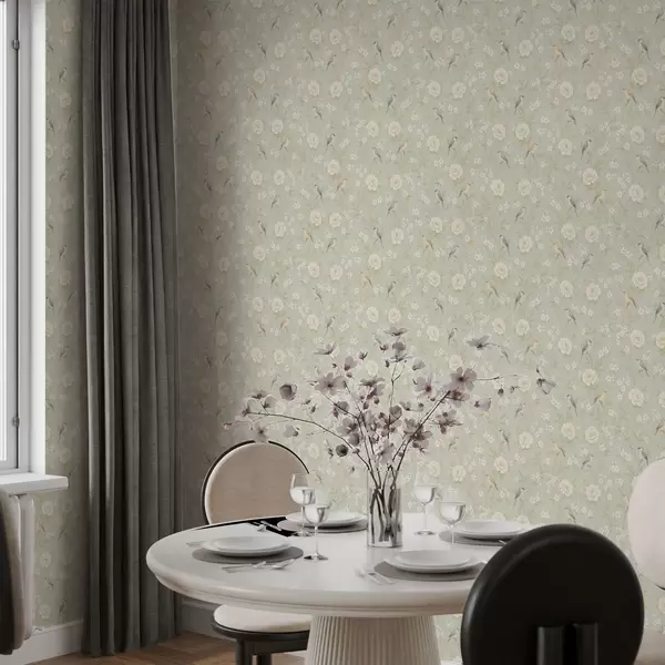 Tapeta Ptice među bijelim cvjetovima na sivozelenoj pozadini br. a00583