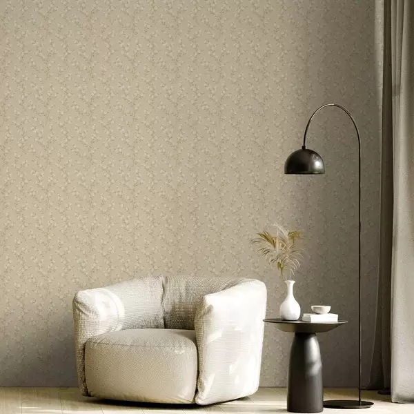 Tapeta Male bijele grančice na bež lanenoj pozadini br. a00584