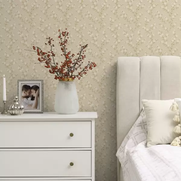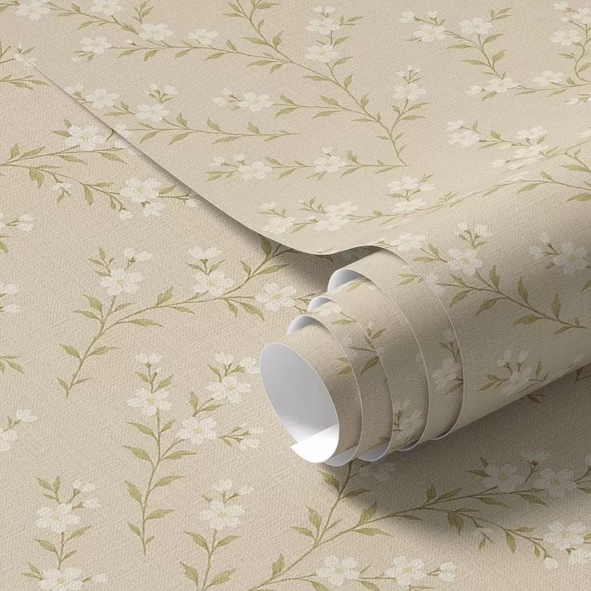 Tapeta Male bijele grančice na bež lanenoj pozadini br. a00584
