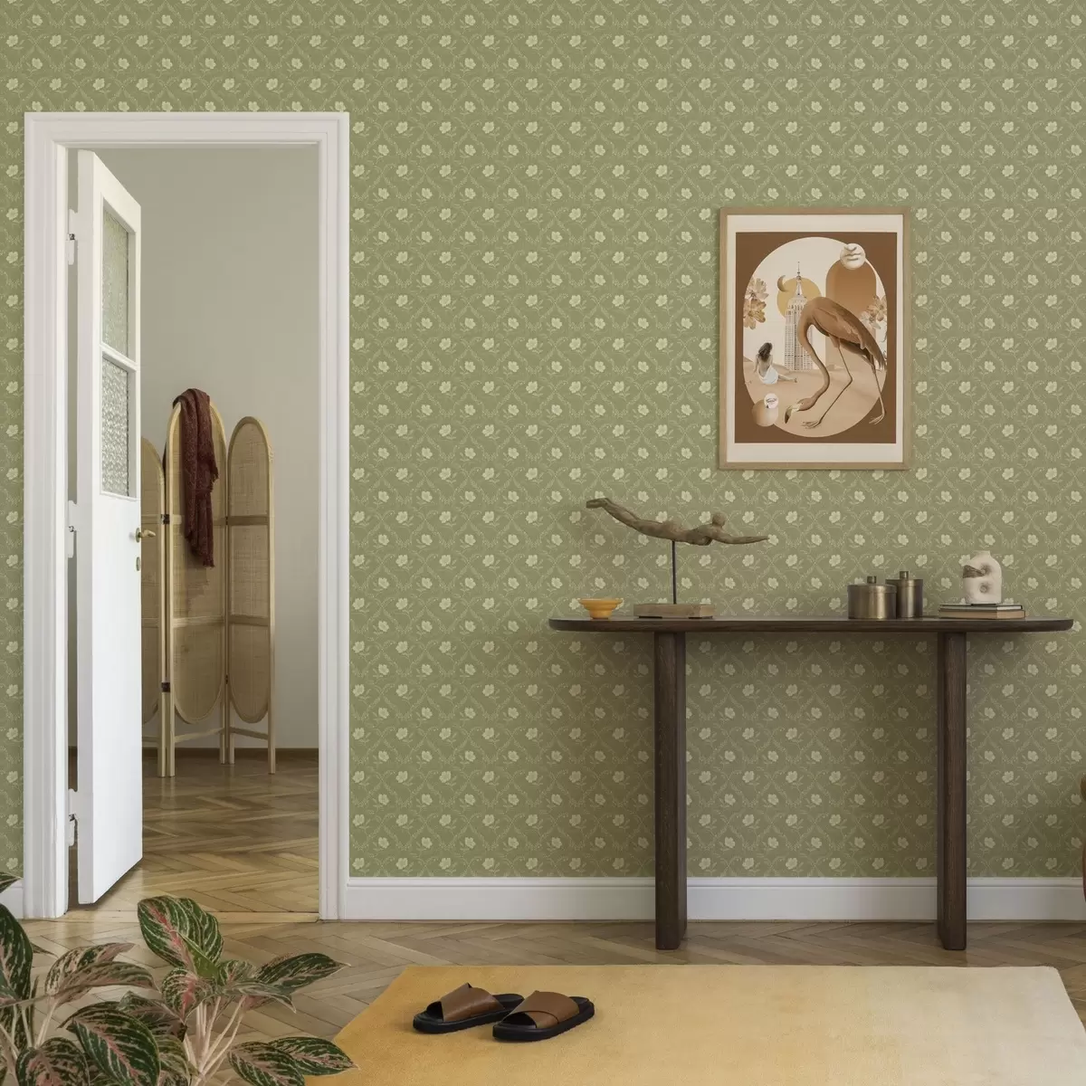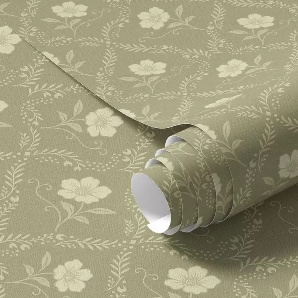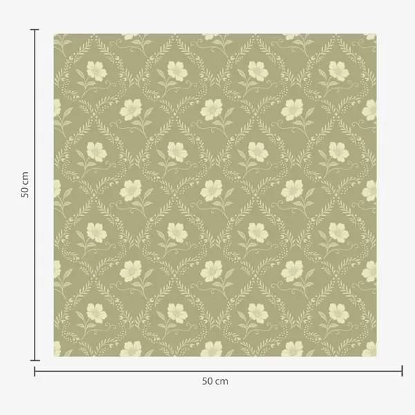 Tapeta Maslinova rešetka s kremastim cvijećem, retro ukras br. a00585