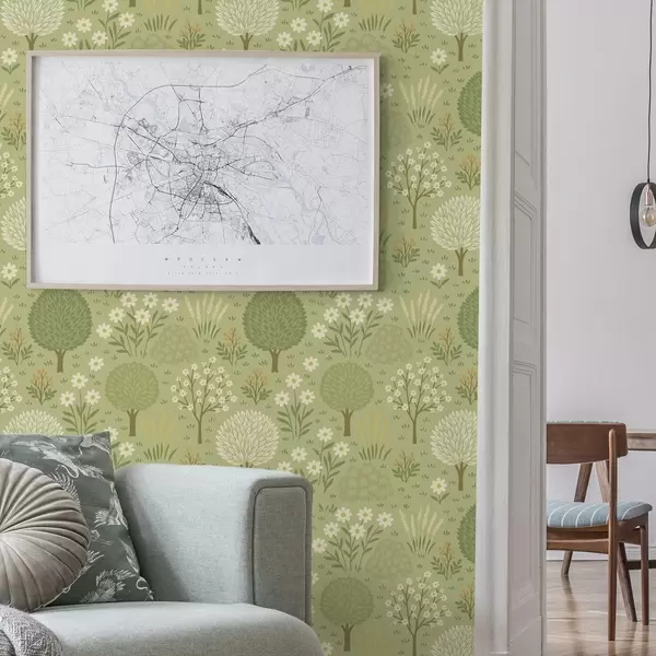 Tapeta Dječji zeleni vrt: drveće, cvijeće i pšenica br. a00586