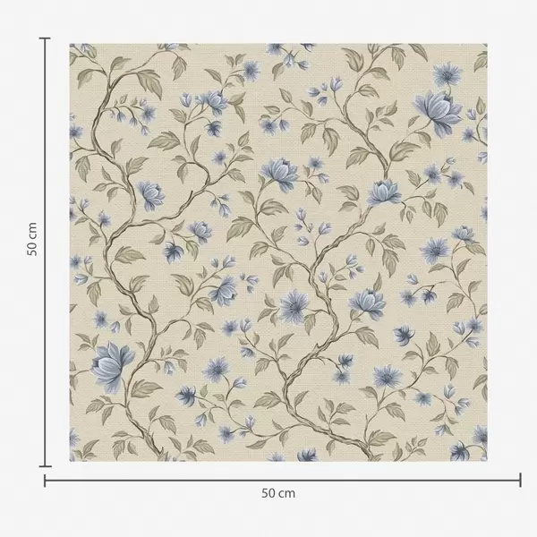 Tapeta Plave cvjetajuće grane na bež lanenoj pozadini br. a00590