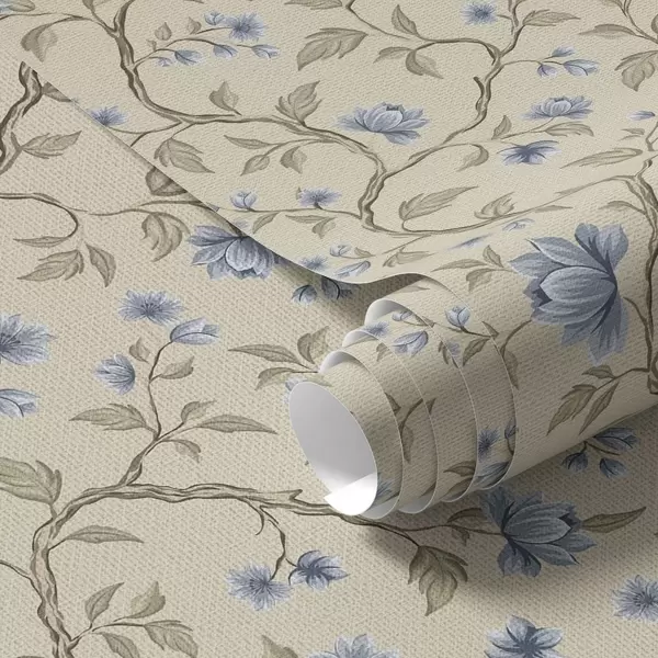 Tapeta Plave cvjetajuće grane na bež lanenoj pozadini br. a00590