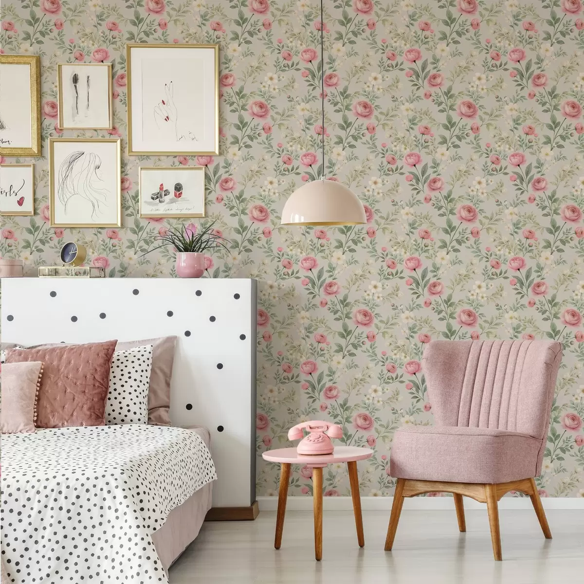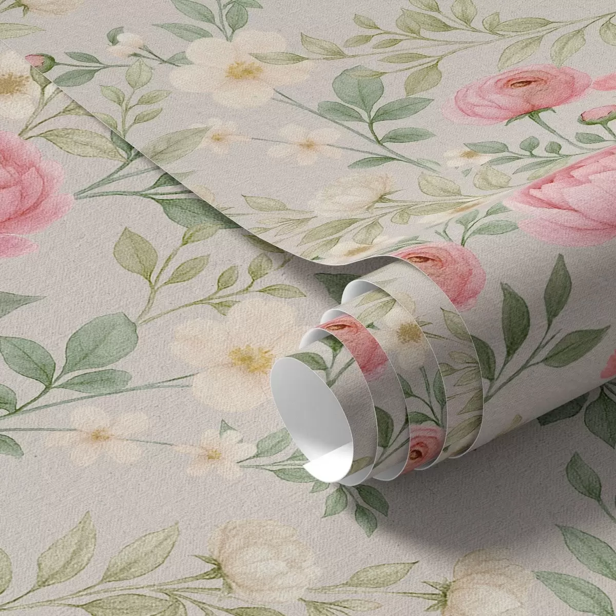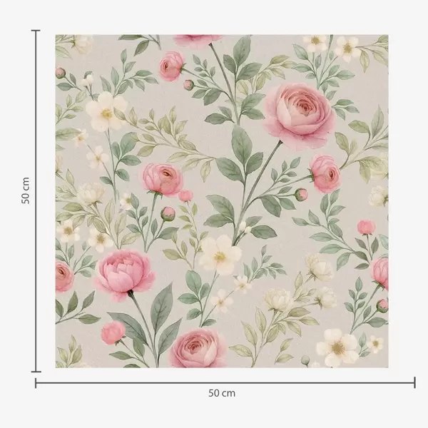 Tapeta Akvarel božuri i bijelo cvijeće na sivo-bež boji br. a00592