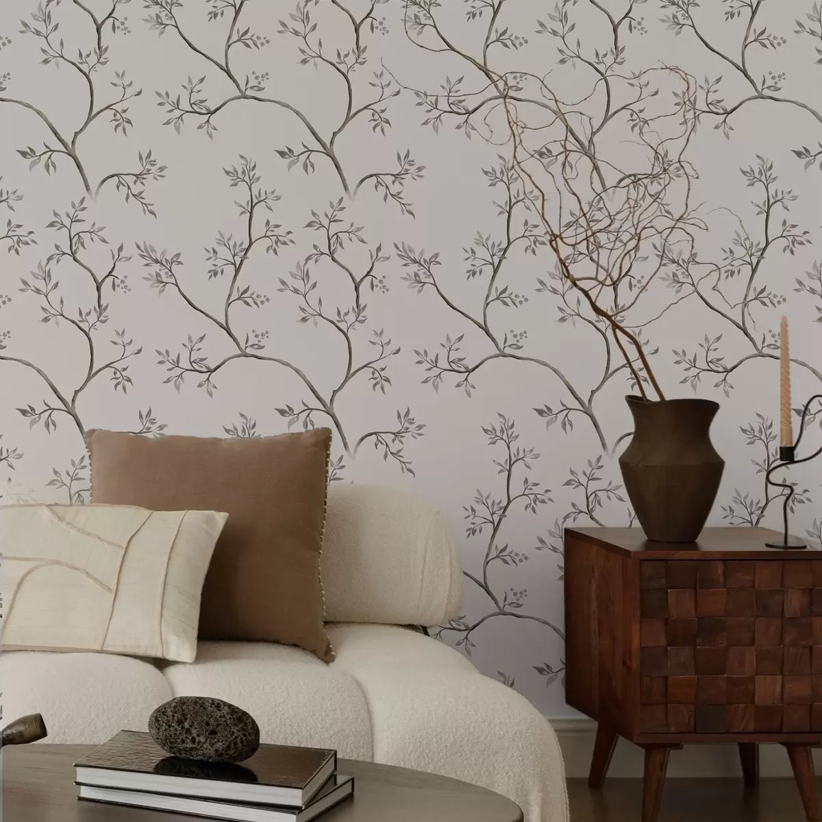 Tapeta Nježne lisnate grane na toploj krem pozadini br. a00597v1