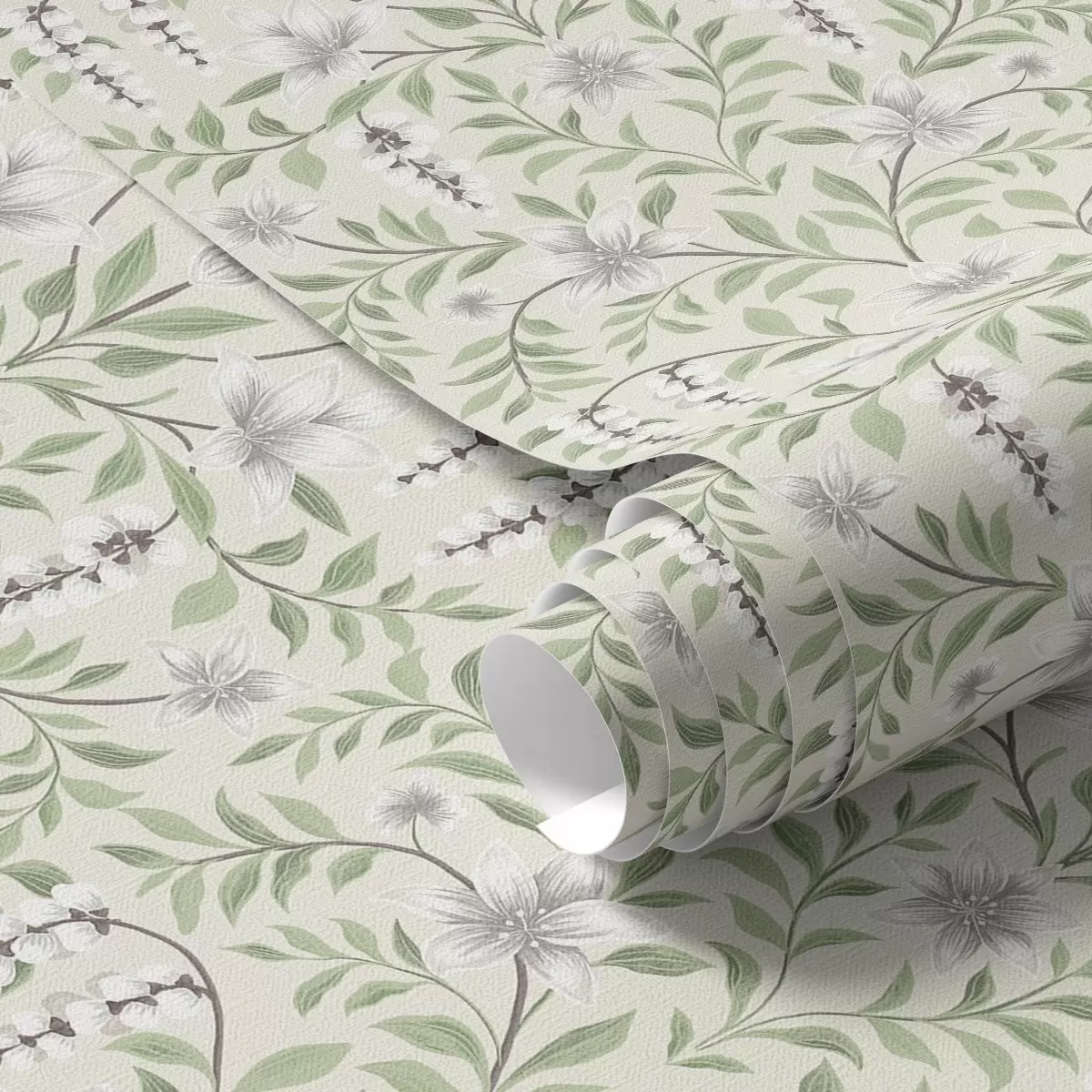 Tapeta Lagani ukras od vinove loze s bijelim cvijećem, simetrija br. a00609