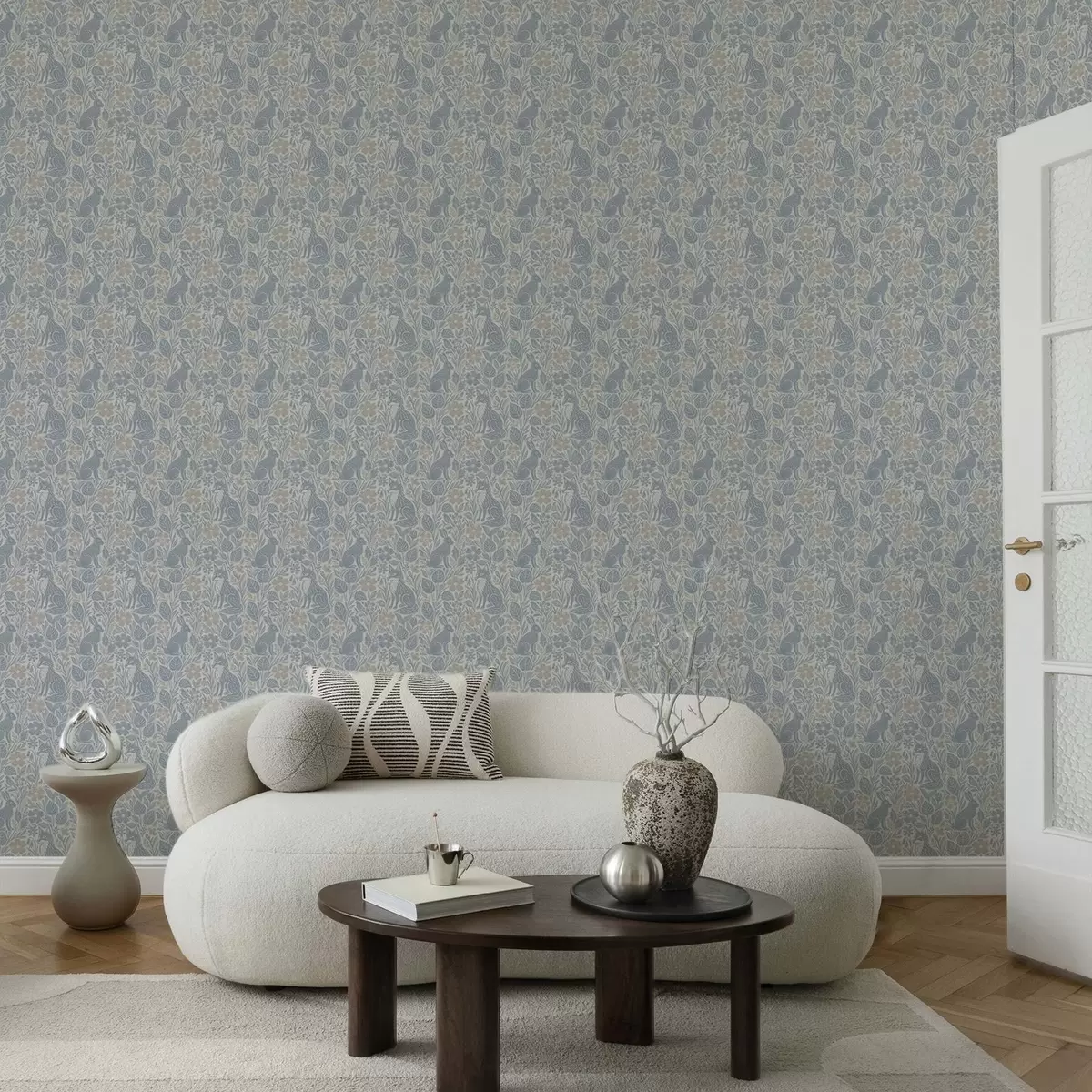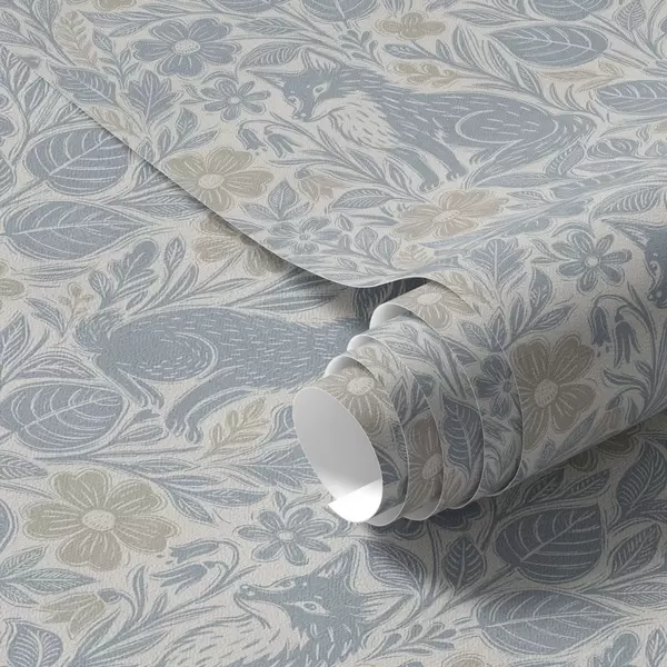 Tapeta Šumske životinje i cvijeće: lisica i zec u plavim tonovima br. a00613