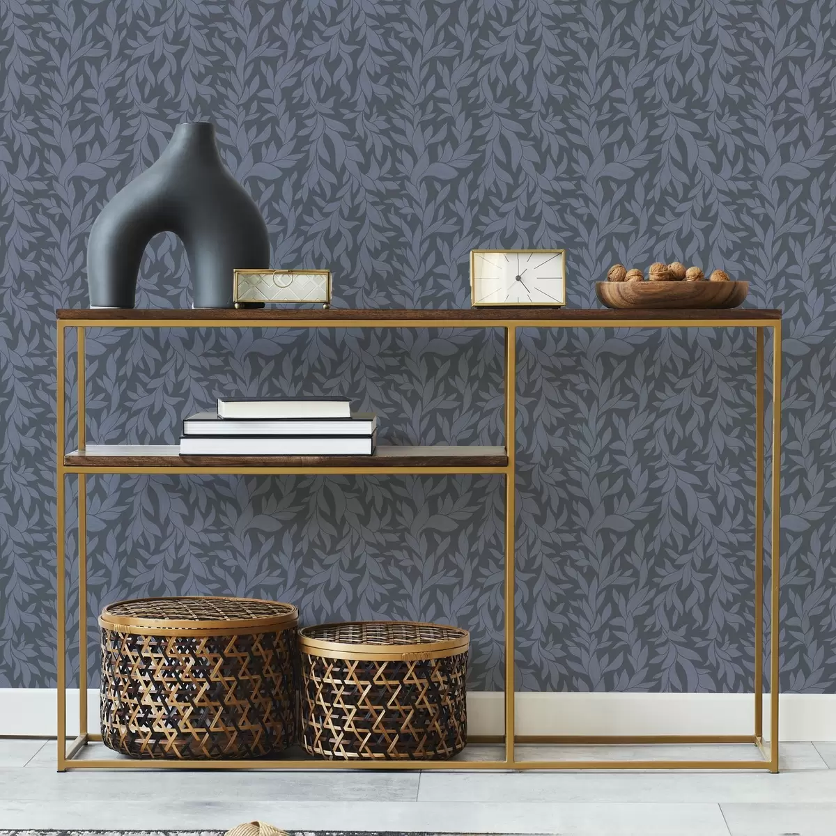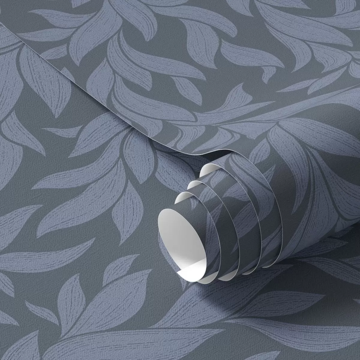 Tapeta Grafitno plava pozadina i plavo lišće, teksturirani potez br. a00616v2