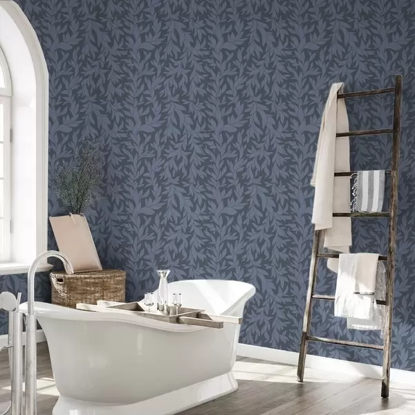 Tapeta Grafitno plava pozadina i plavo lišće, teksturirani potez br. a00616v2